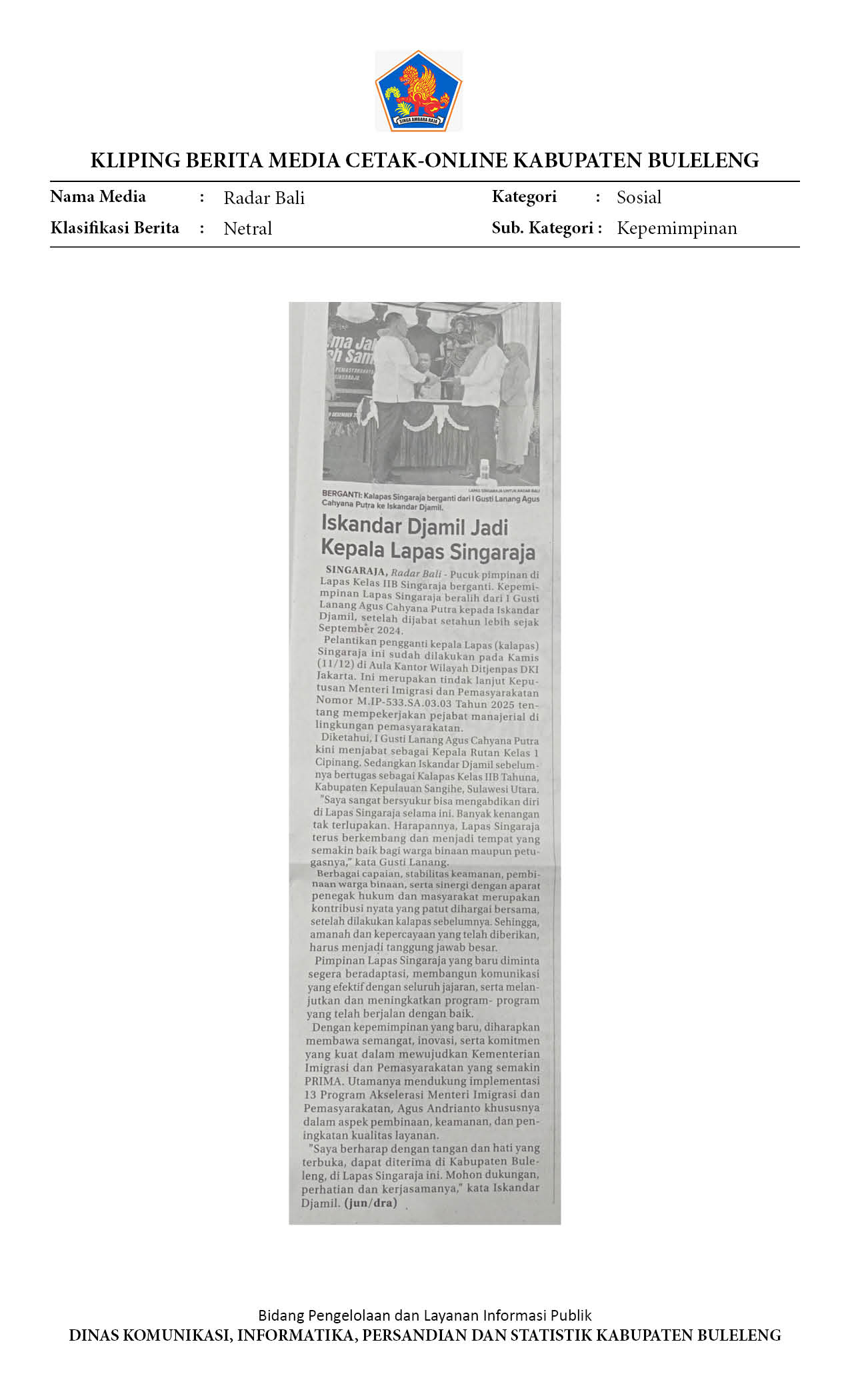 ISKANDAR DJAMIL RESMI JABAT KALAPAS SINGARAJA