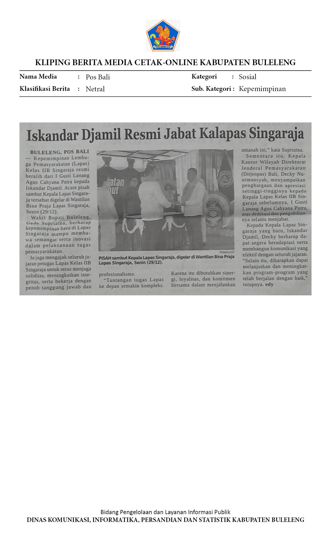 ISKANDAR DJAMIL JADI KEPALA LAPAS SINGARAJA