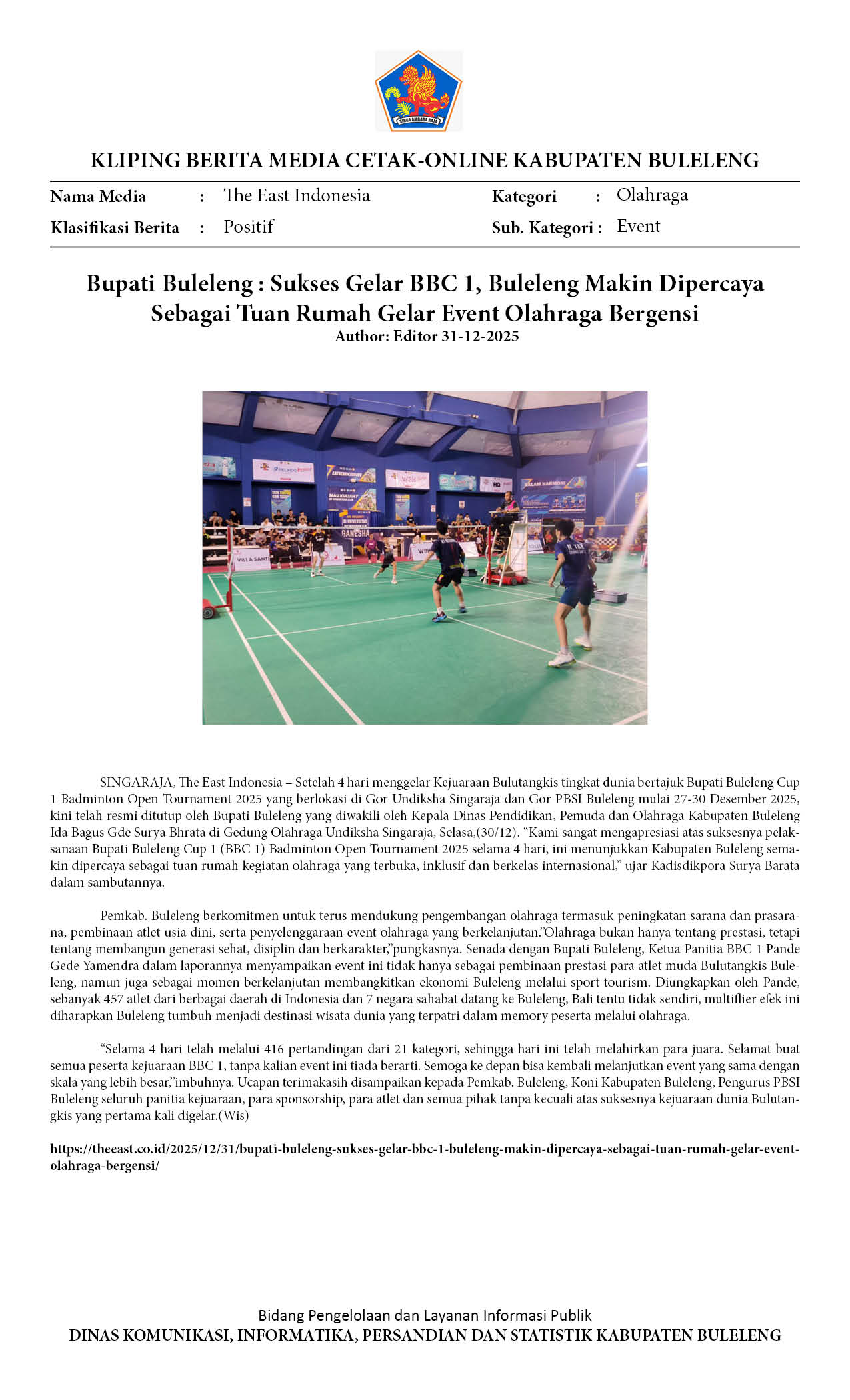 BUPATI BULELENG : SUKSES GELAR BBC 1, BULELENG MAKIN DIPERCAYA SEBAGAI TUAN RUMAH GELAR EVENT OLAHRAGA BERGENSI