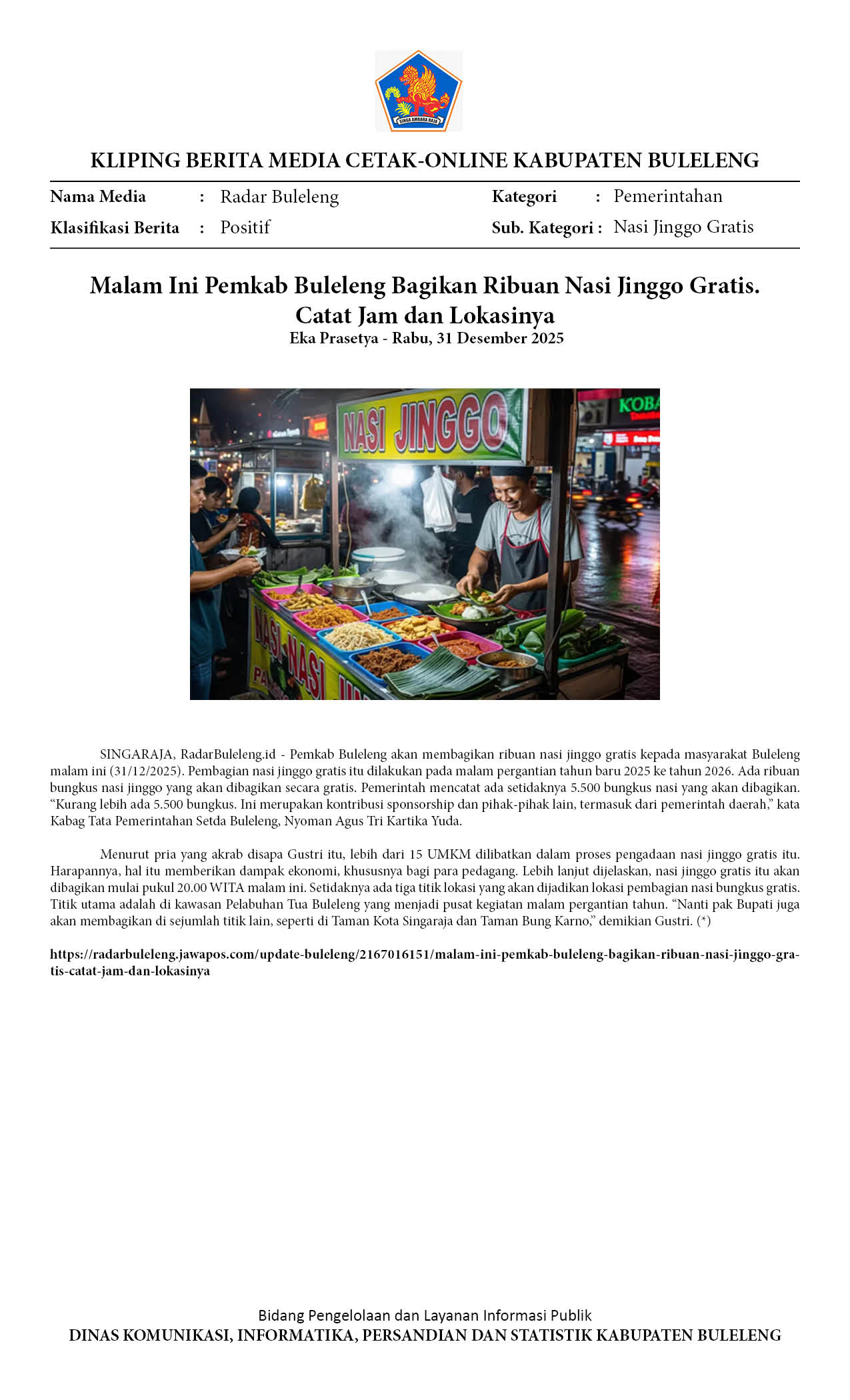 MALAM INI PEMKAB BULELENG BAGIKAN RIBUAN NASI JINGGO GRATIS. CATAT JAM DAN LOKASINYA