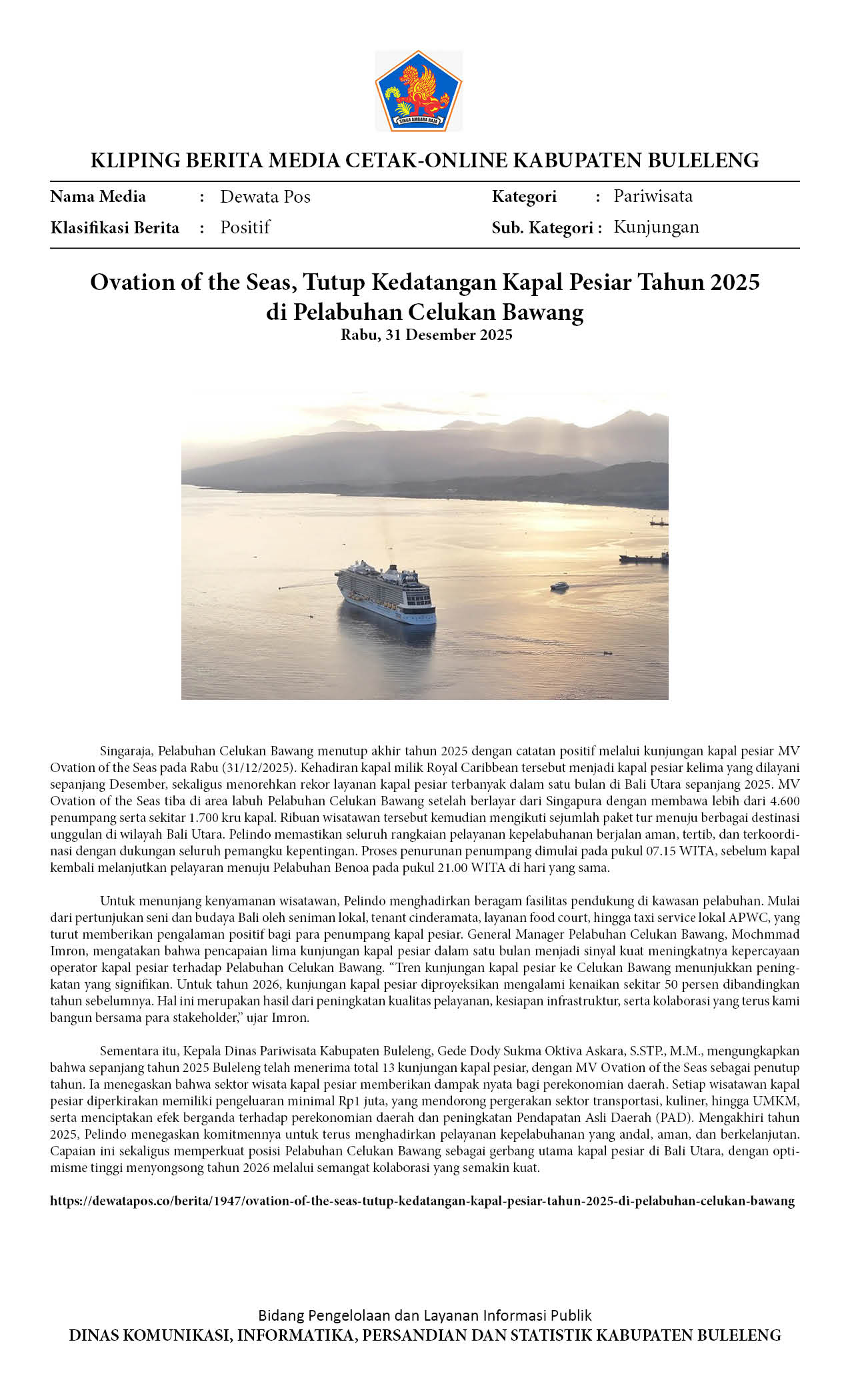 OVATION OF THE SEAS, TUTUP KEDATANGAN KAPAL PESIAR TAHUN 2025 DI PELABUHAN CELUKAN BAWANG