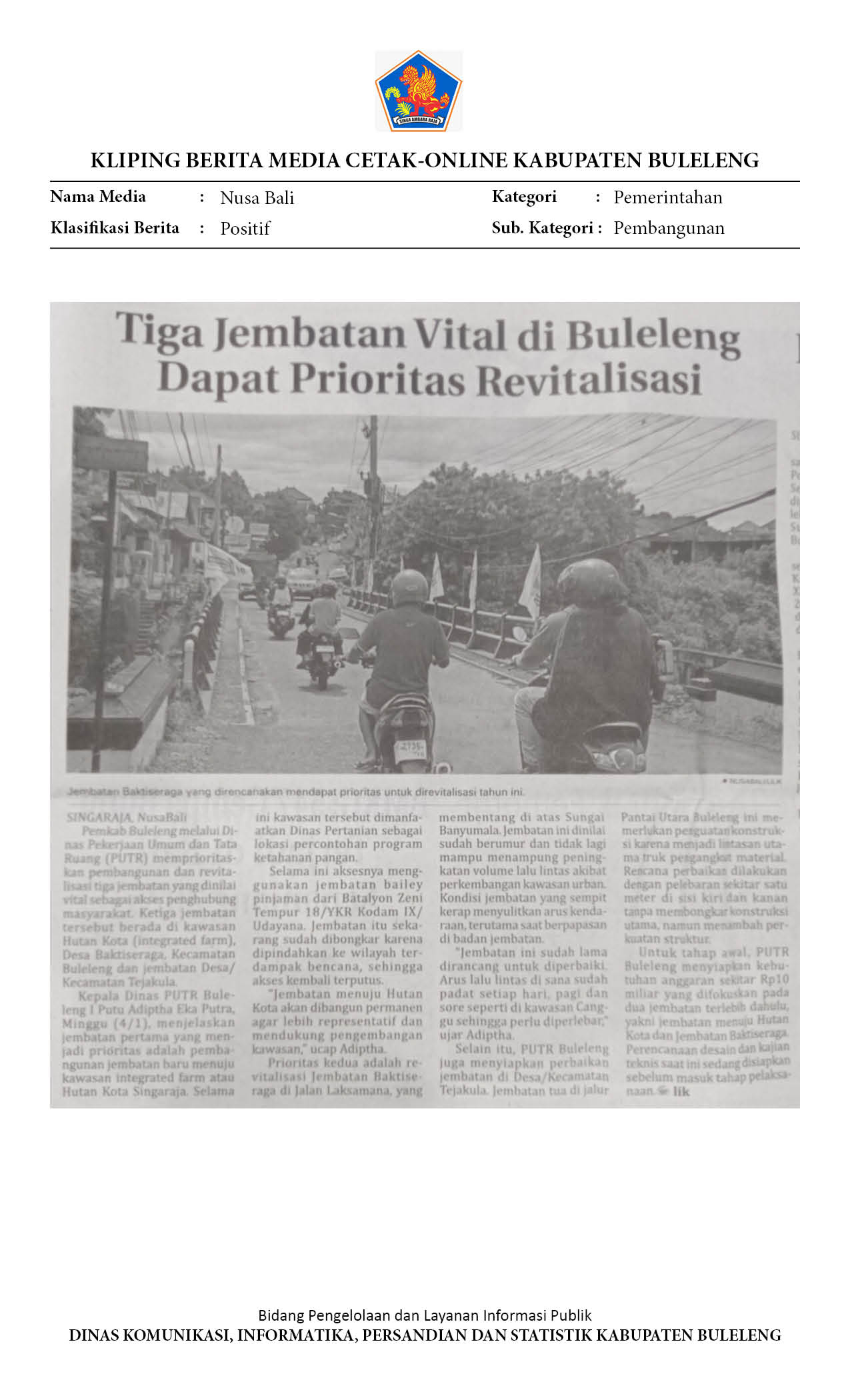 TIGA JEMBATAN VITAL DI BULELENG DAPAT PRIORITAS REVITALISASI