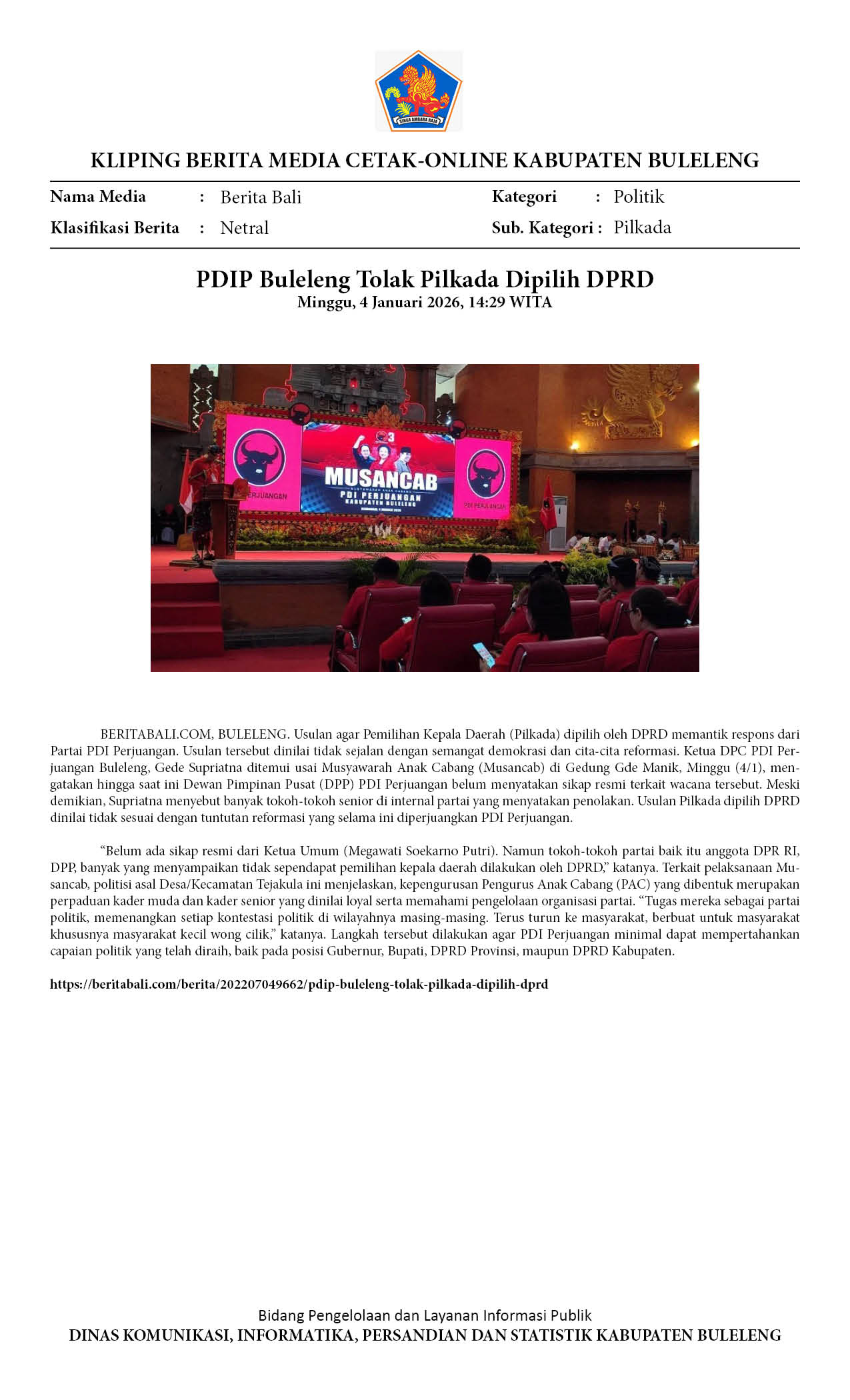 PDIP BULELENG TOLAK PILKADA DIPILIH DPRD