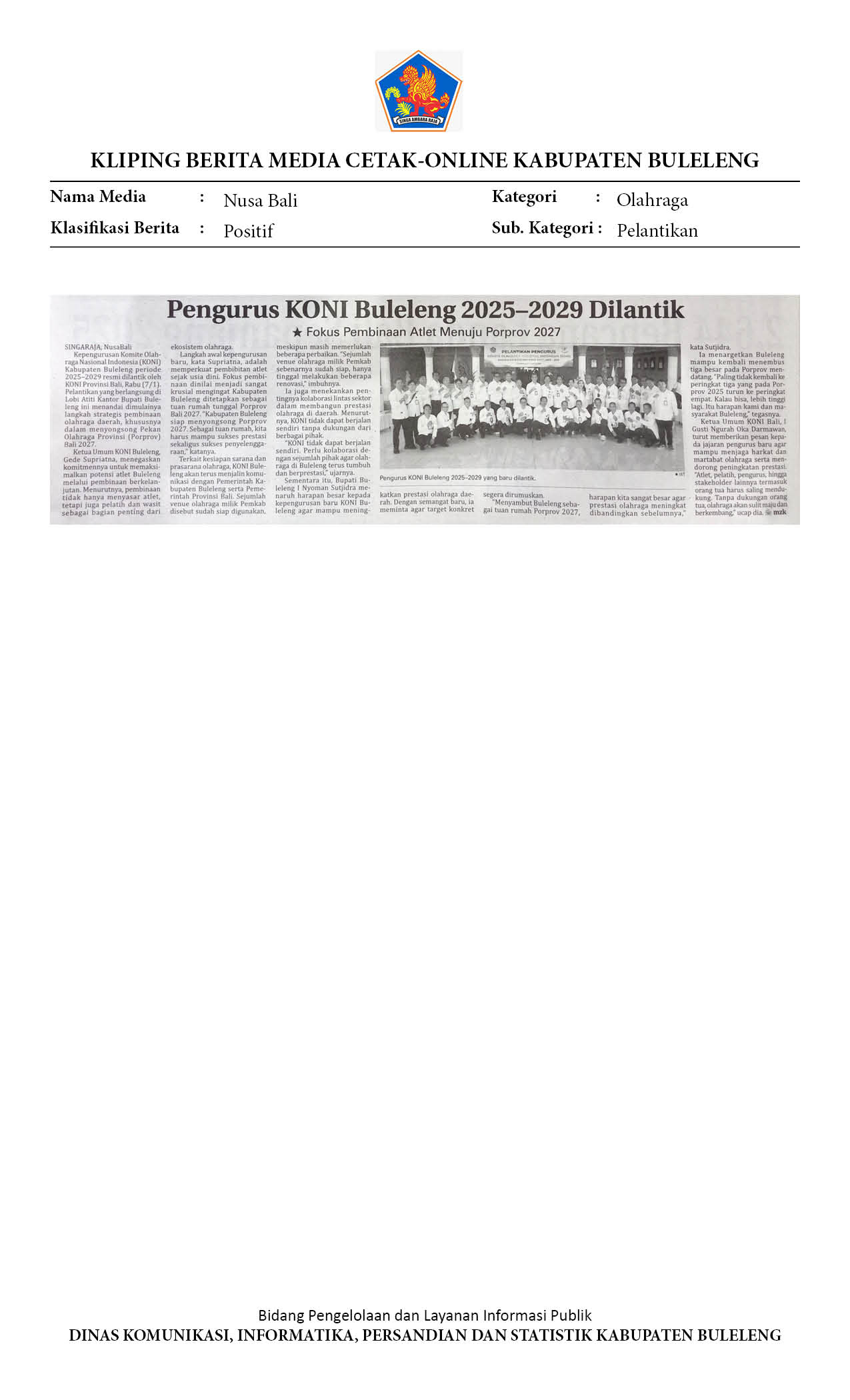 PENGURUS KONI BULELENG 2025–2029 DILANTIK, FOKUS PEMBINAAN ATLET MENUJU PORPROV 2027