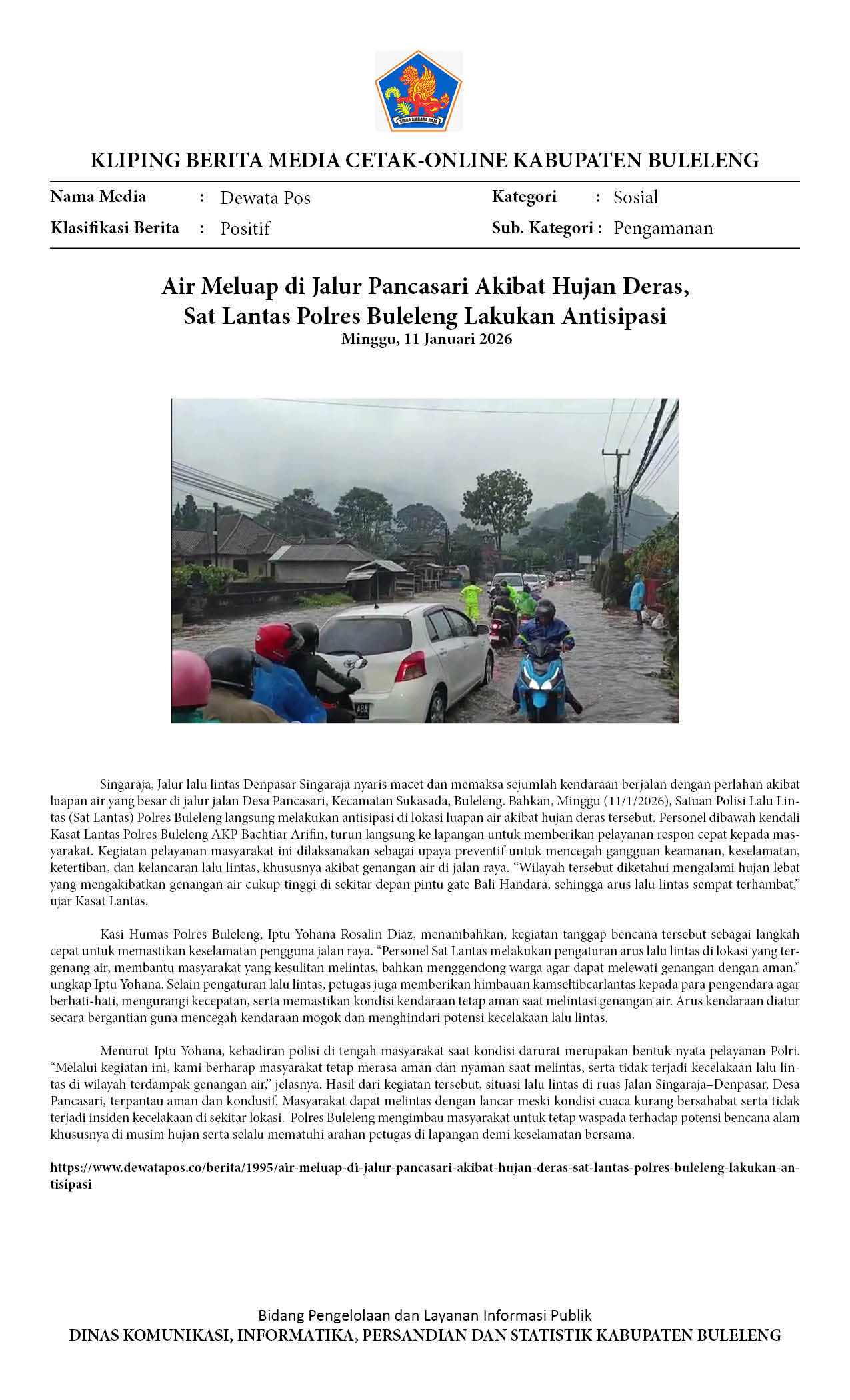 AIR MELUAP DI JALUR PANCASARI AKIBAT HUJAN DERAS, SAT LANTAS POLRES BULELENG LAKUKAN ANTISIPASI