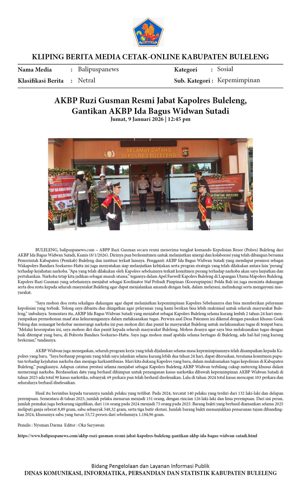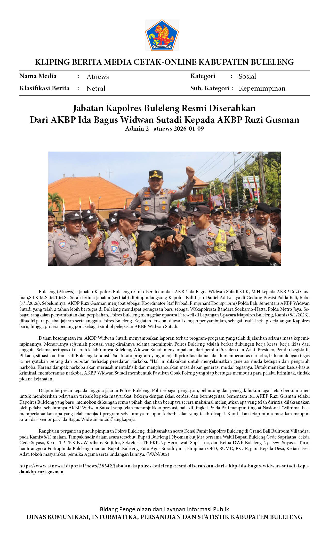 AKBP RUZI GUSMAN RESMI JABAT KAPOLRES BULELENG, GANTIKAN AKBP IDA BAGUS WIDWAN SUTADI