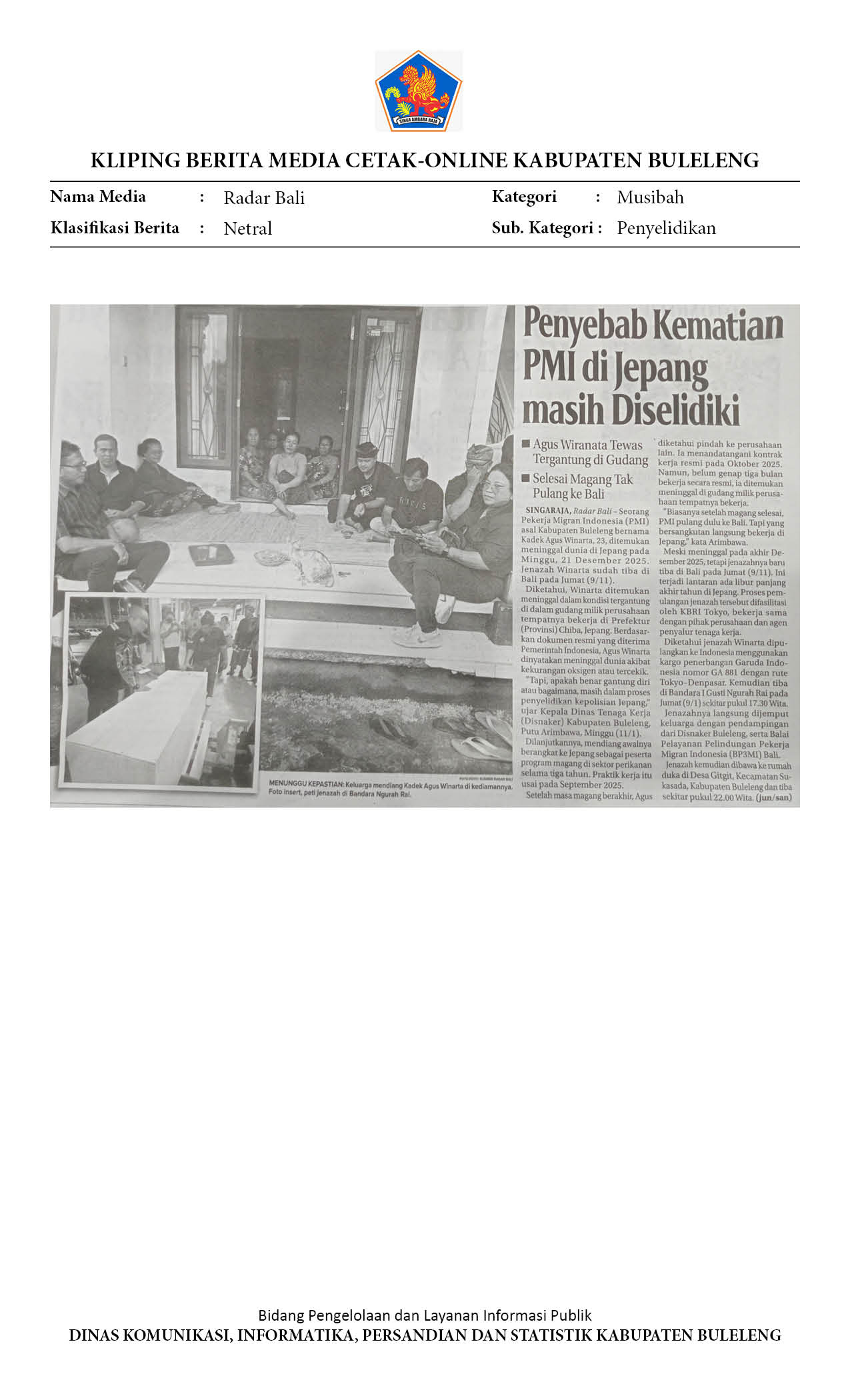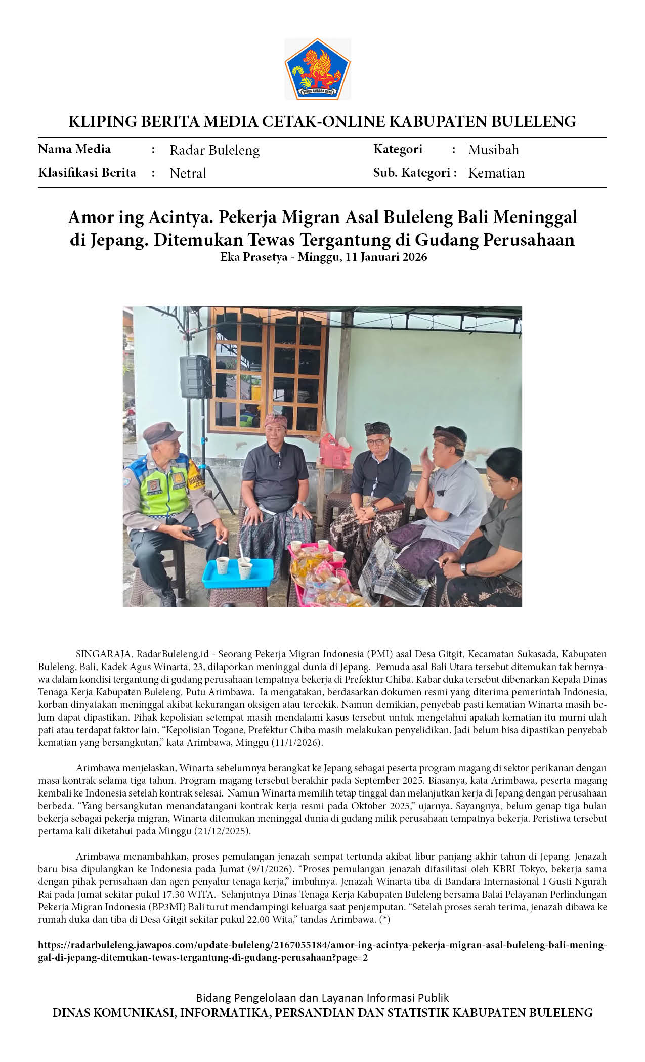 AMOR ING ACINTYA. PEKERJA MIGRAN ASAL BULELENG BALI MENINGGAL DI JEPANG. DITEMUKAN TEWAS TERGANTUNG DI GUDANG PERUSAHAAN