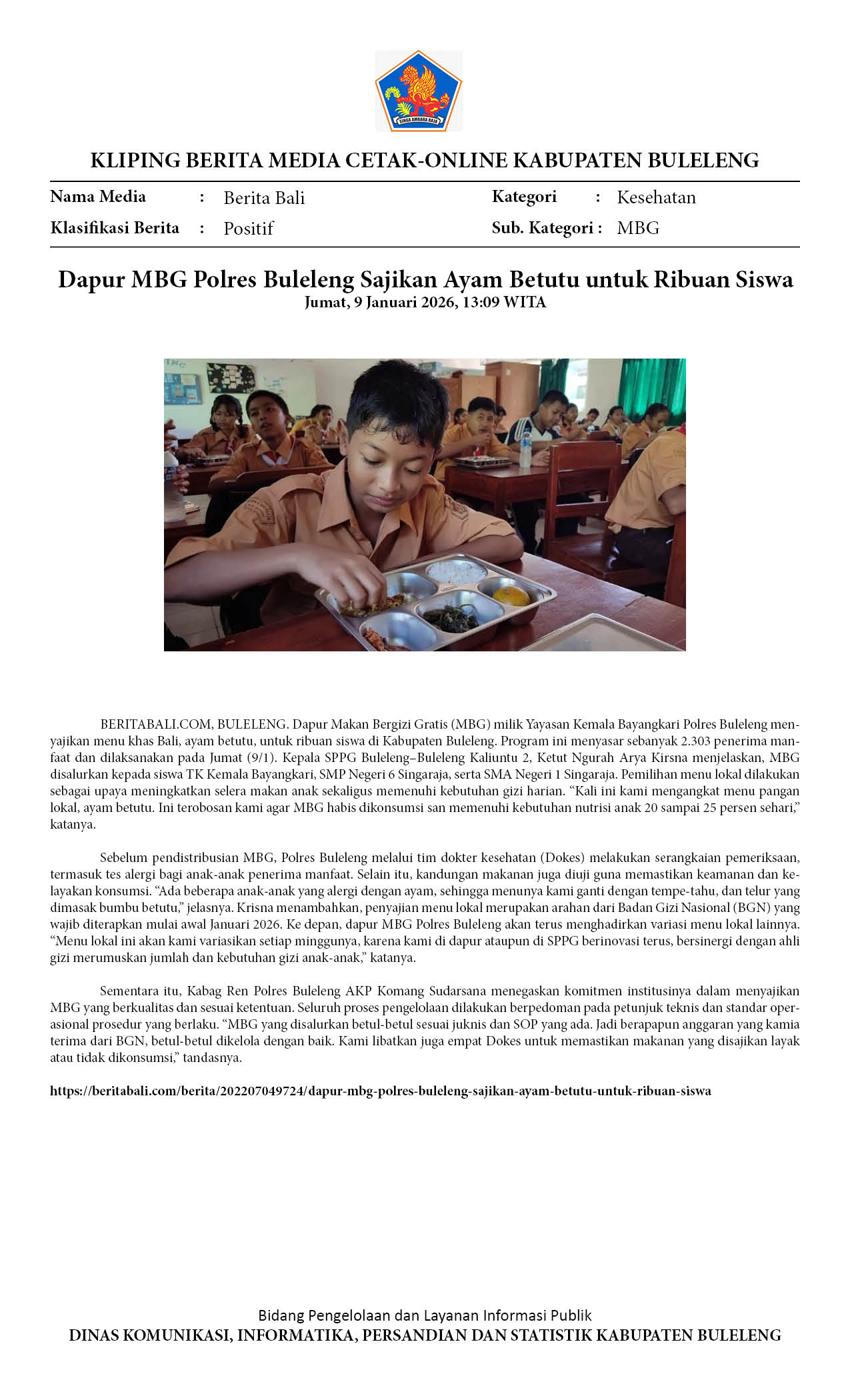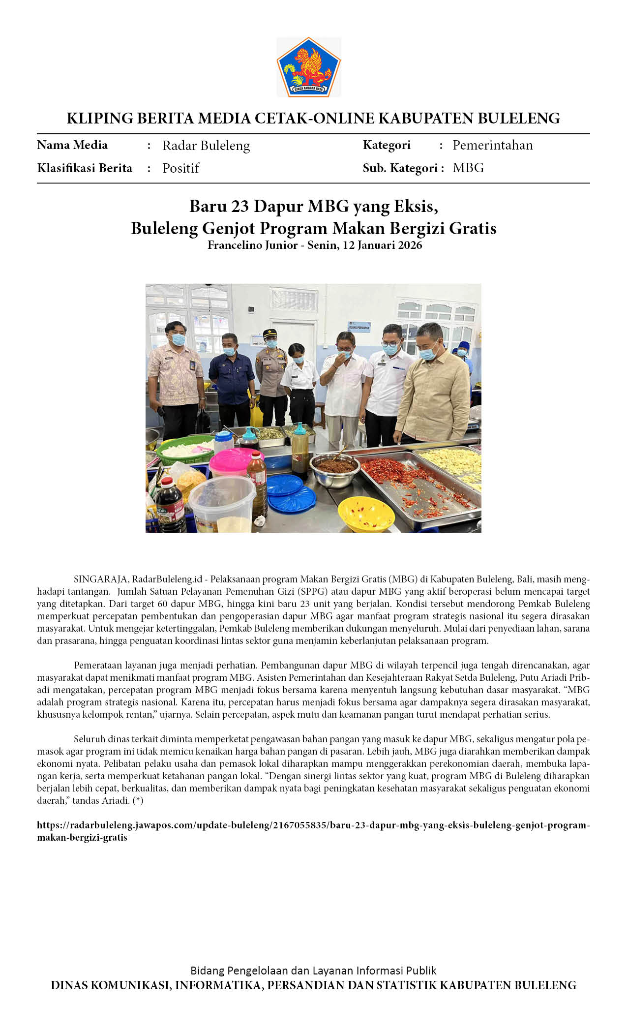 BARU 23 DAPUR MBG YANG EKSIS, BULELENG GENJOT PROGRAM MAKAN BERGIZI GRATIS