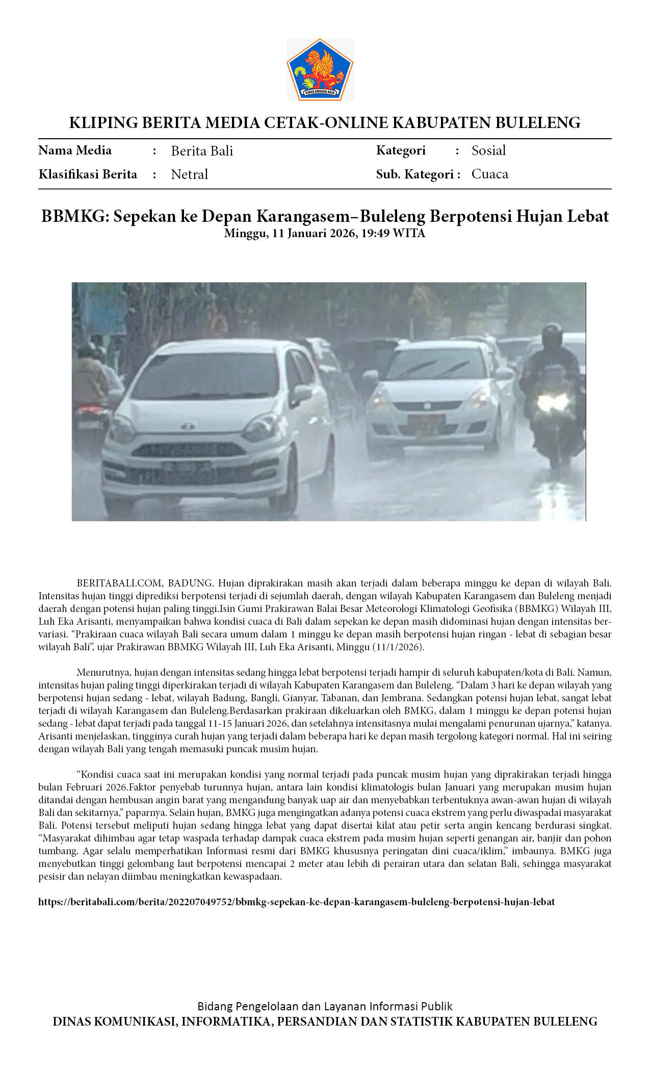BBMKG: SEPEKAN KE DEPAN KARANGASEM–BULELENG BERPOTENSI HUJAN LEBAT