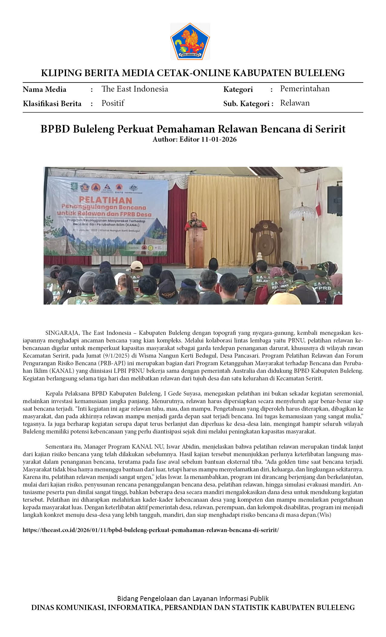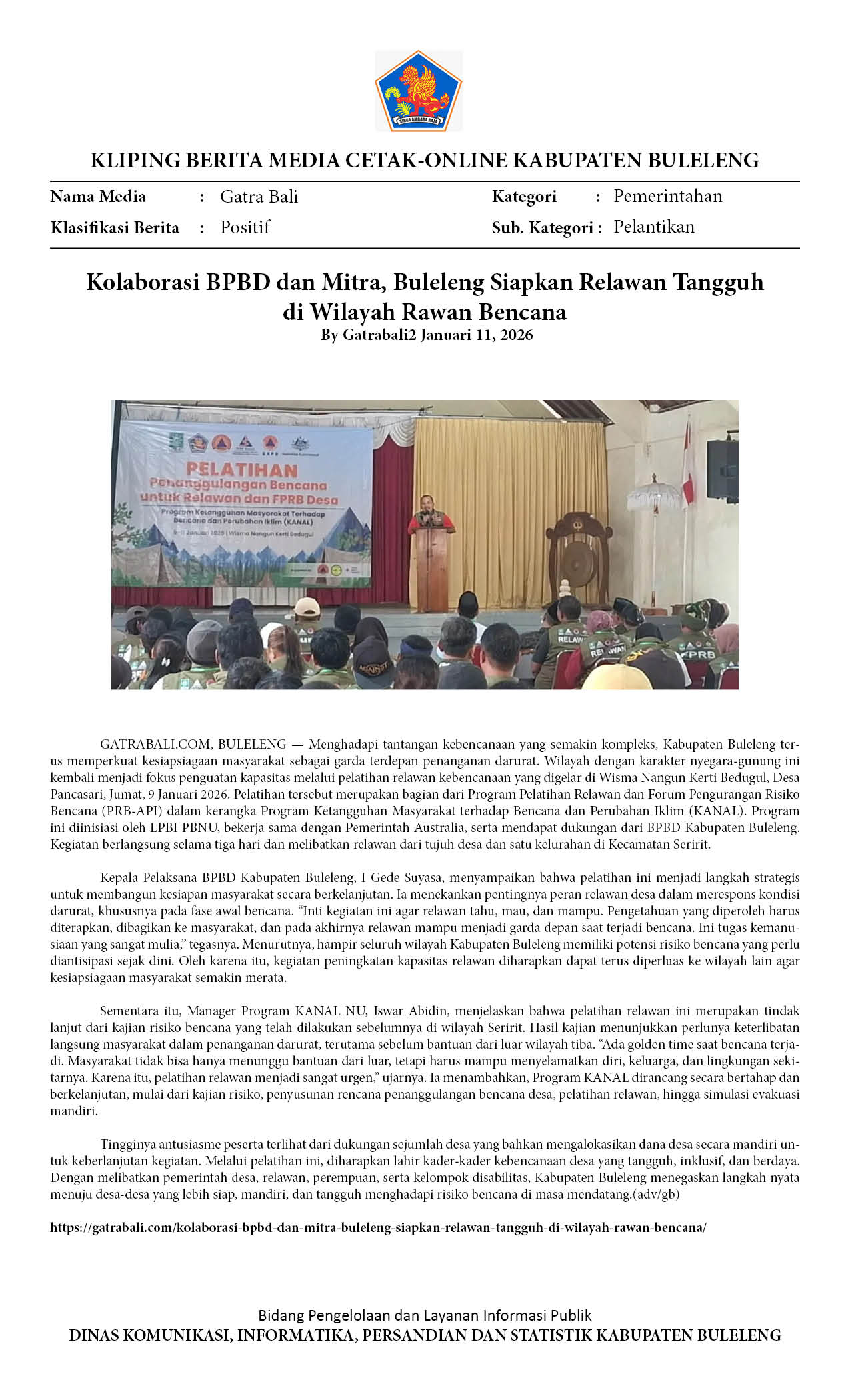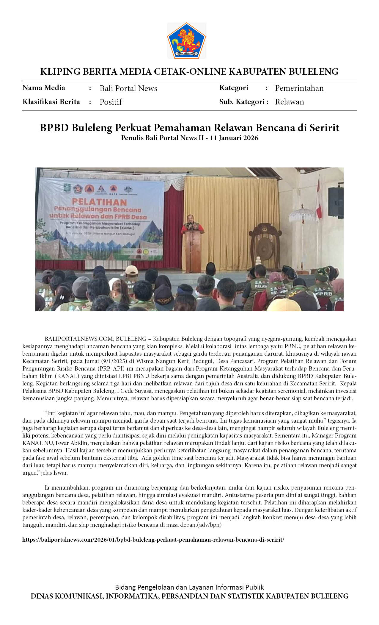 KOLABORASI BPBD DAN MITRA, BULELENG SIAPKAN RELAWAN TANGGUH DI WILAYAH RAWAN BENCANA