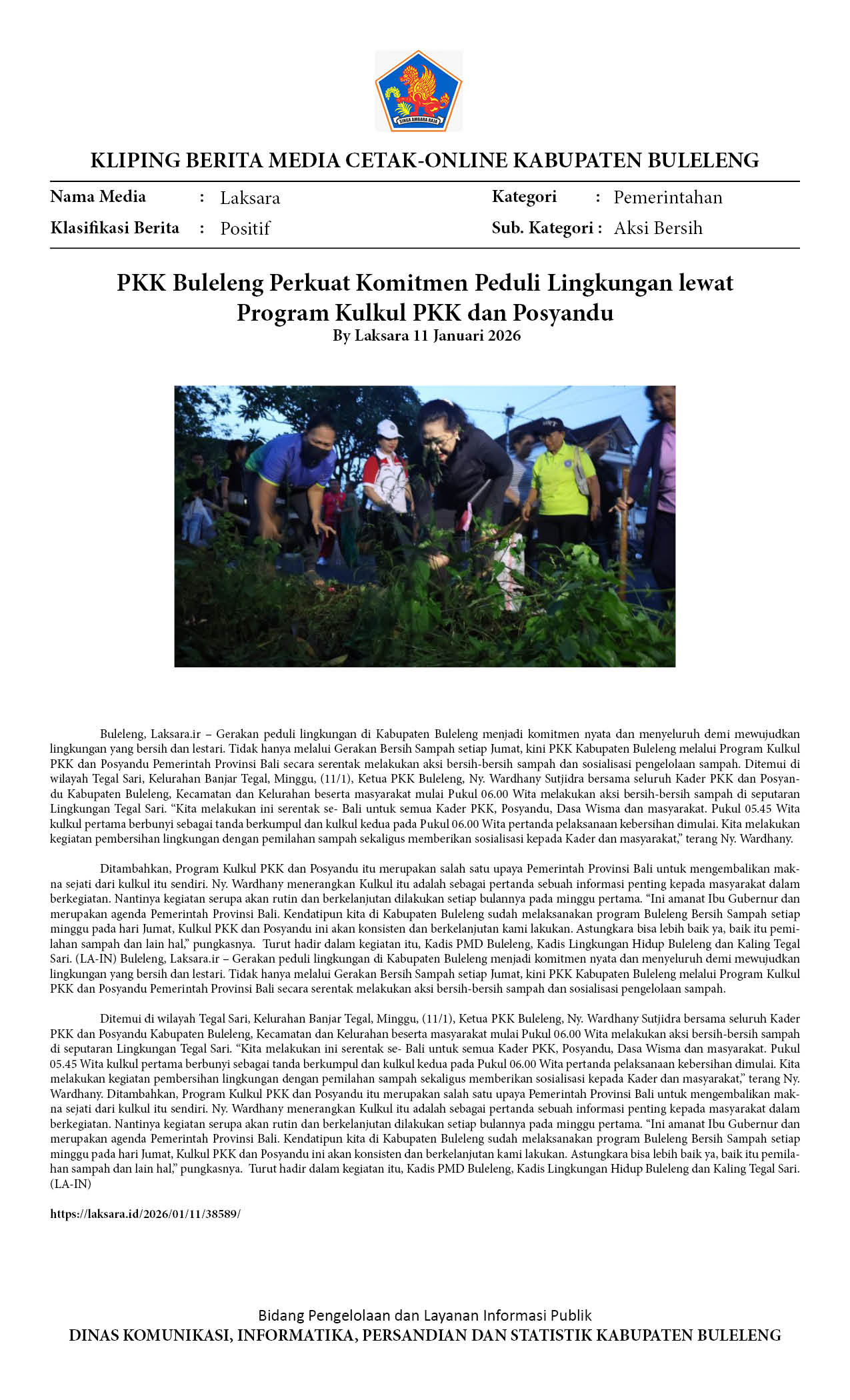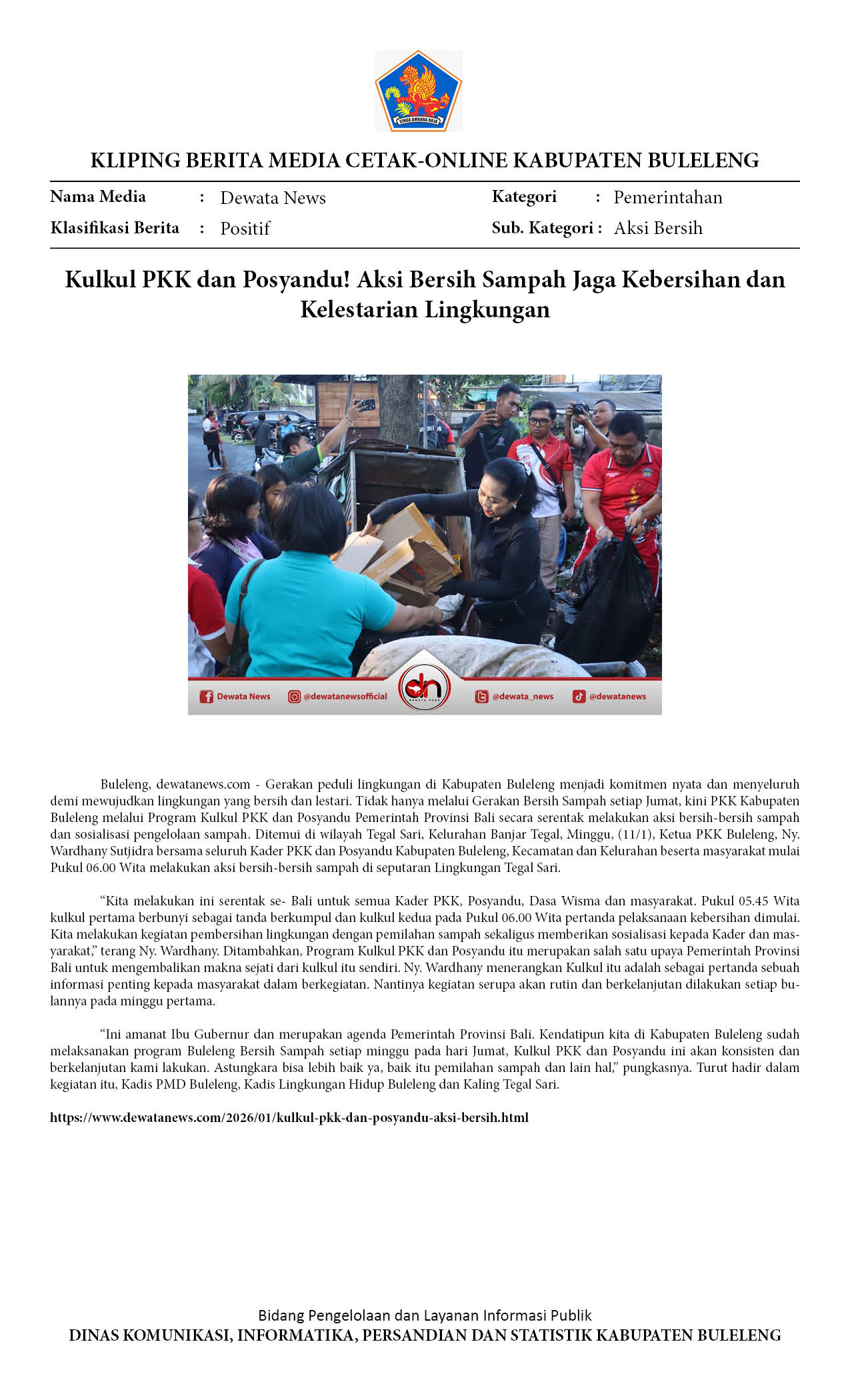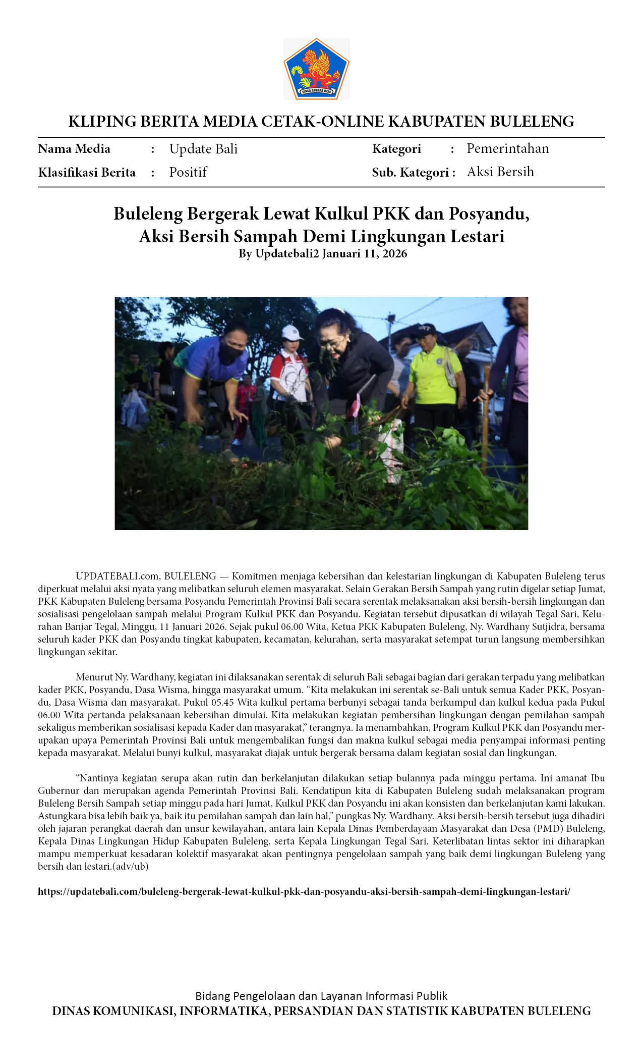 BULELENG BERGERAK LEWAT KULKUL PKK DAN POSYANDU, AKSI BERSIH SAMPAH DEMI LINGKUNGAN LESTARI
