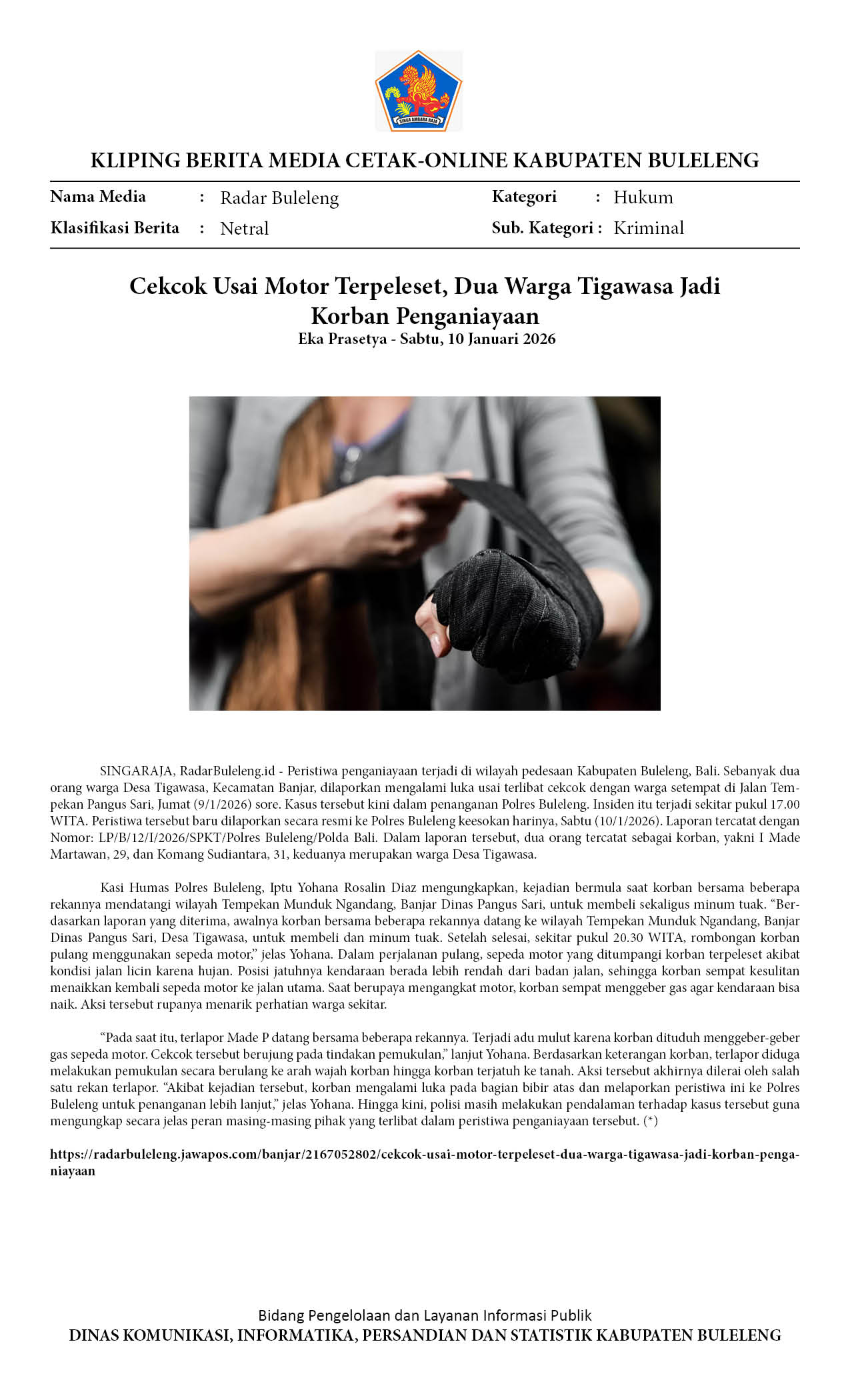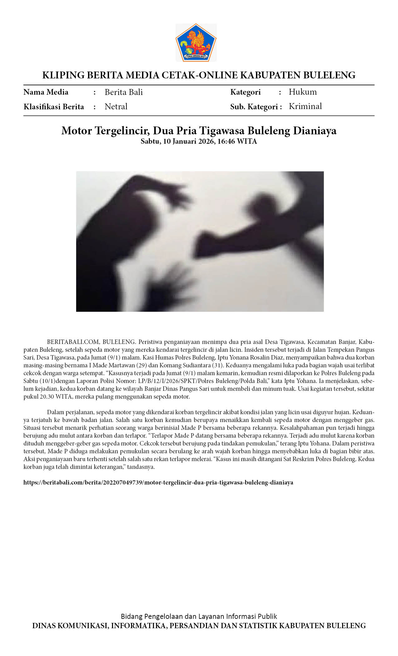 MOTOR TERGELINCIR, DUA PRIA TIGAWASA BULELENG DIANIAYA