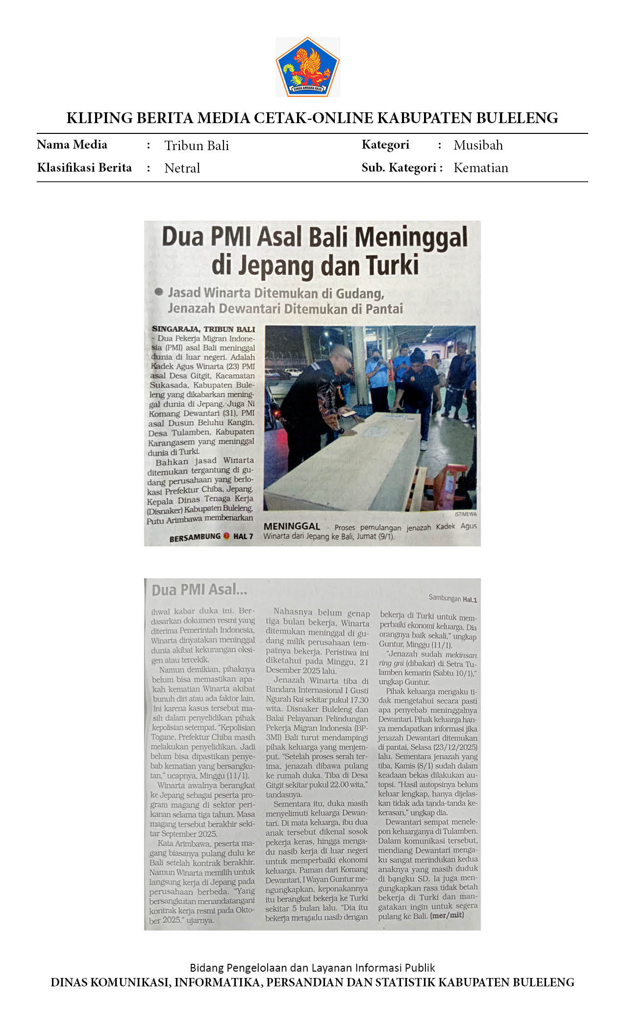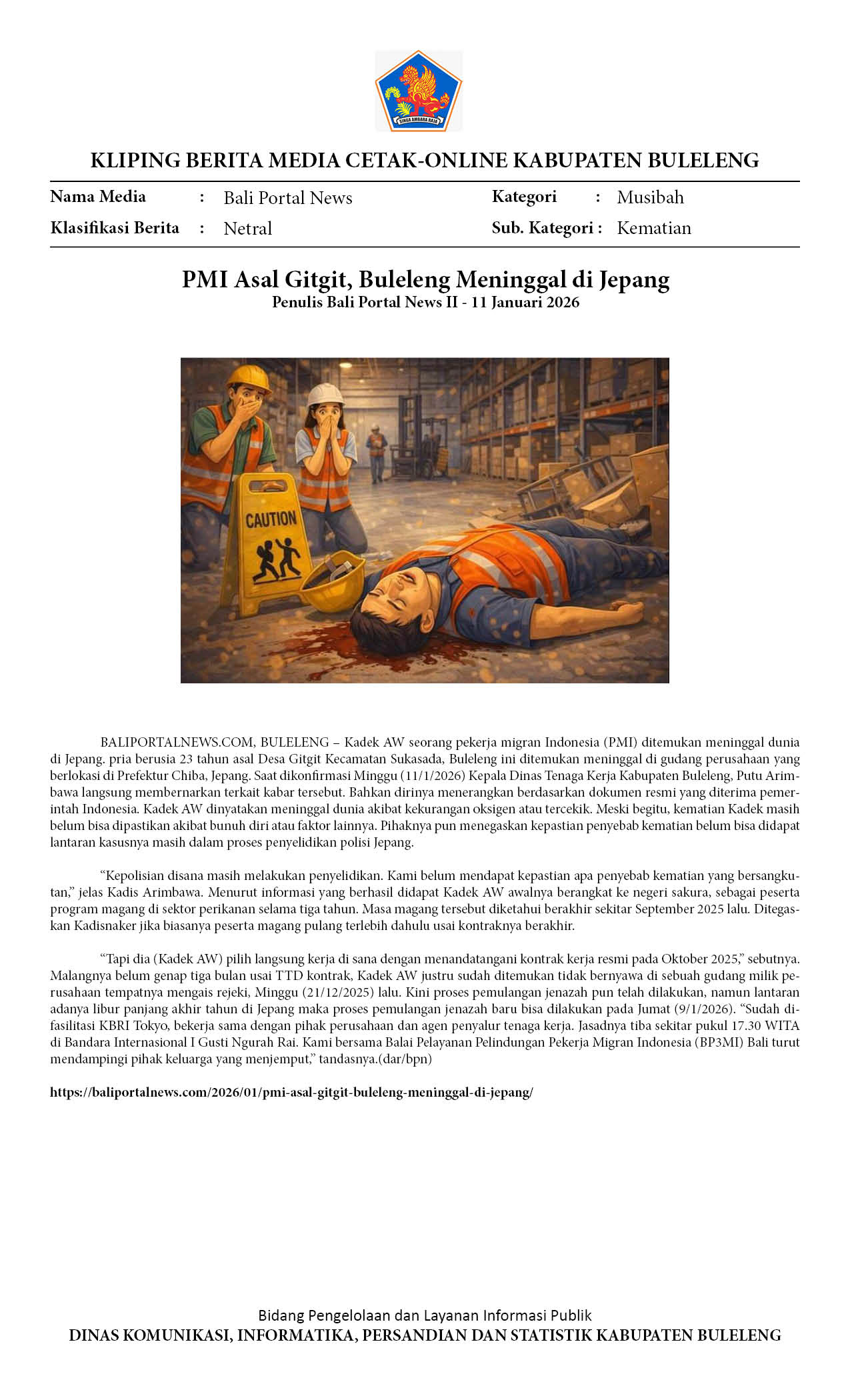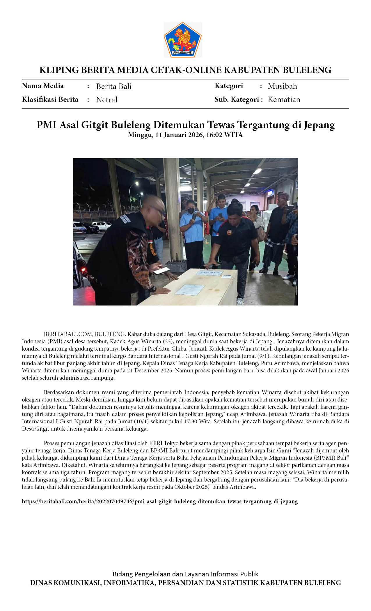 PMI ASAL GITGIT BULELENG DITEMUKAN TEWAS TERGANTUNG DI JEPANG