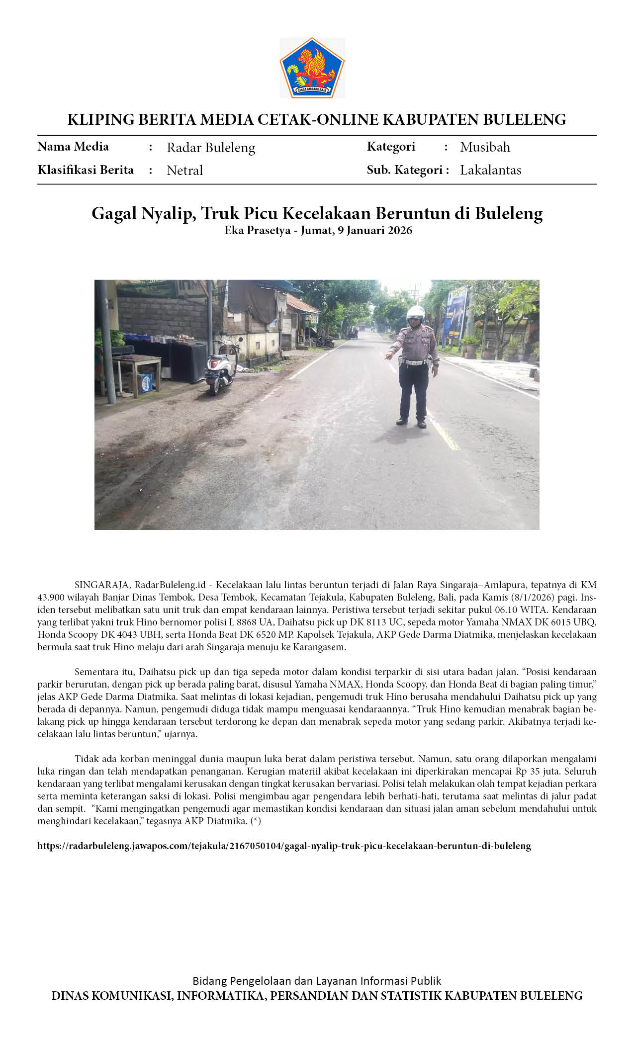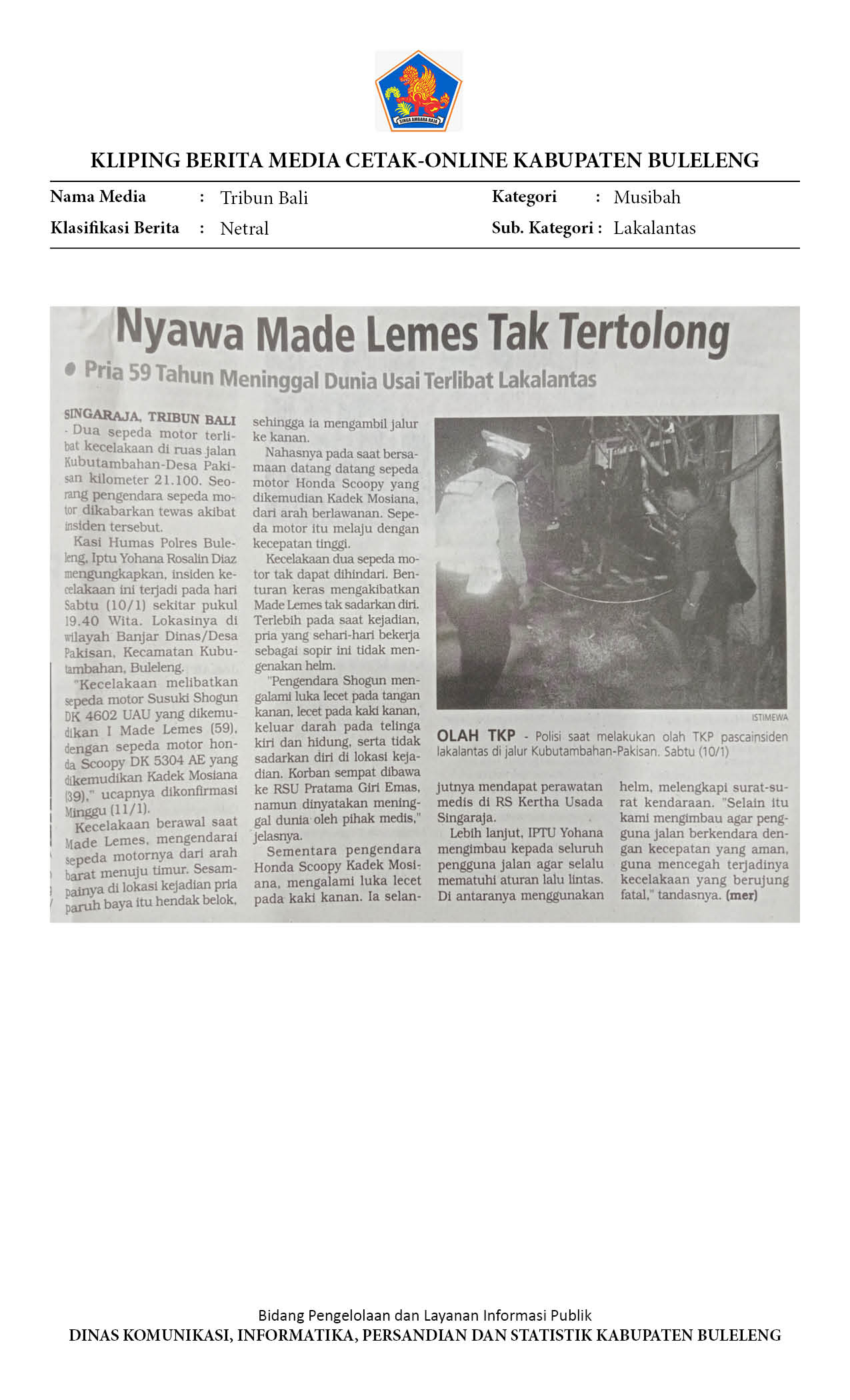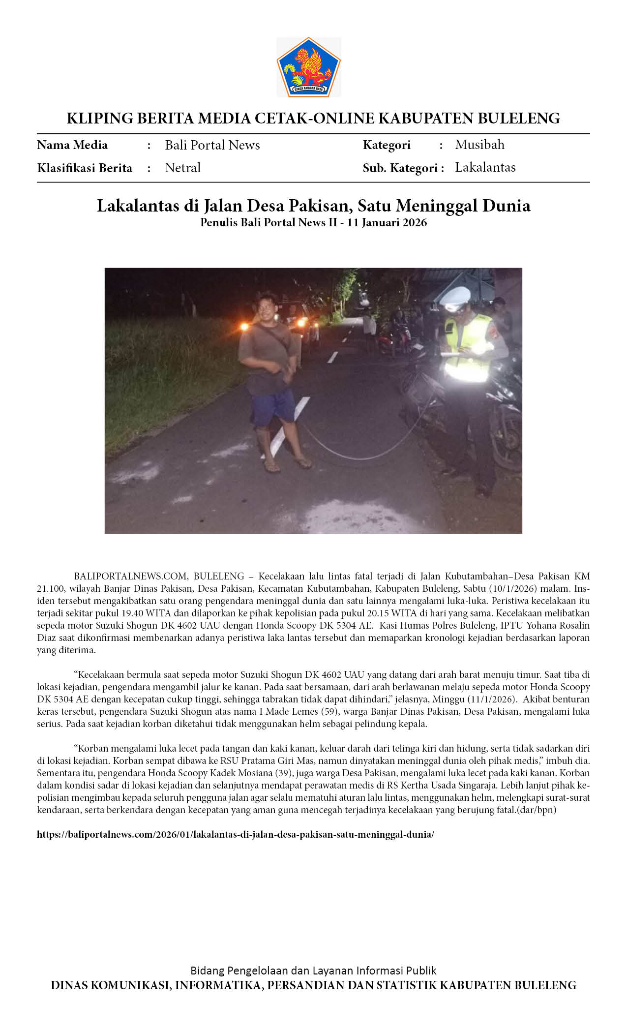 AMOR ING ACINTYA. KECELAKAAN MAUT DI DESA PAKISAN BULELENG, SEORANG PENGENDARA MOTOR TEWAS