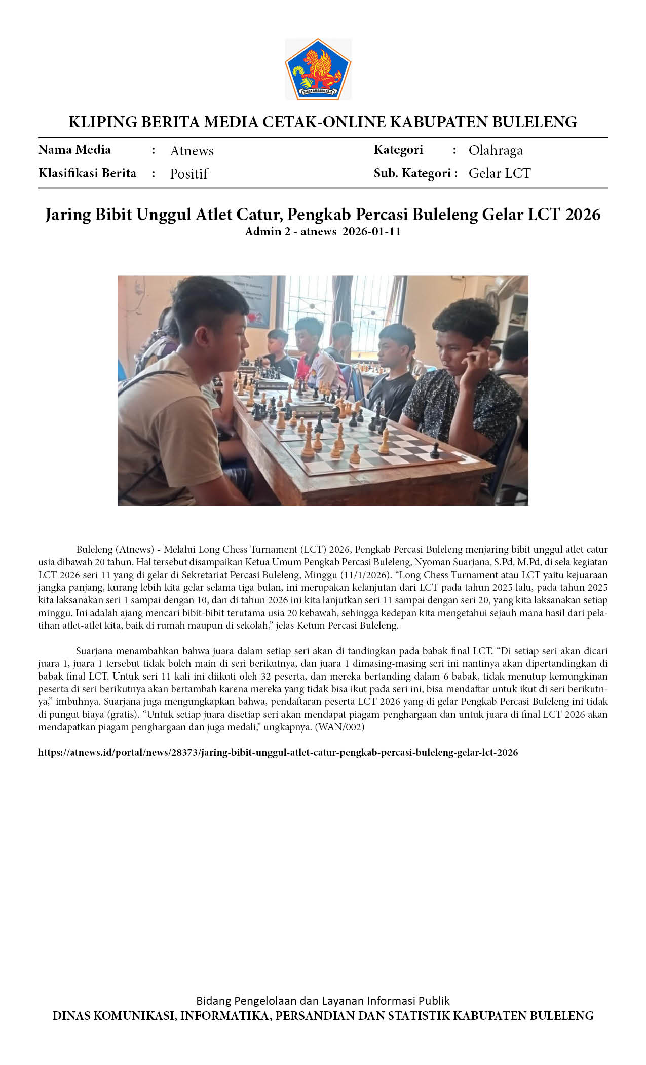 JARING BIBIT UNGGUL ATLET CATUR, PENGKAB PERCASI BULELENG GELAR LCT 2026