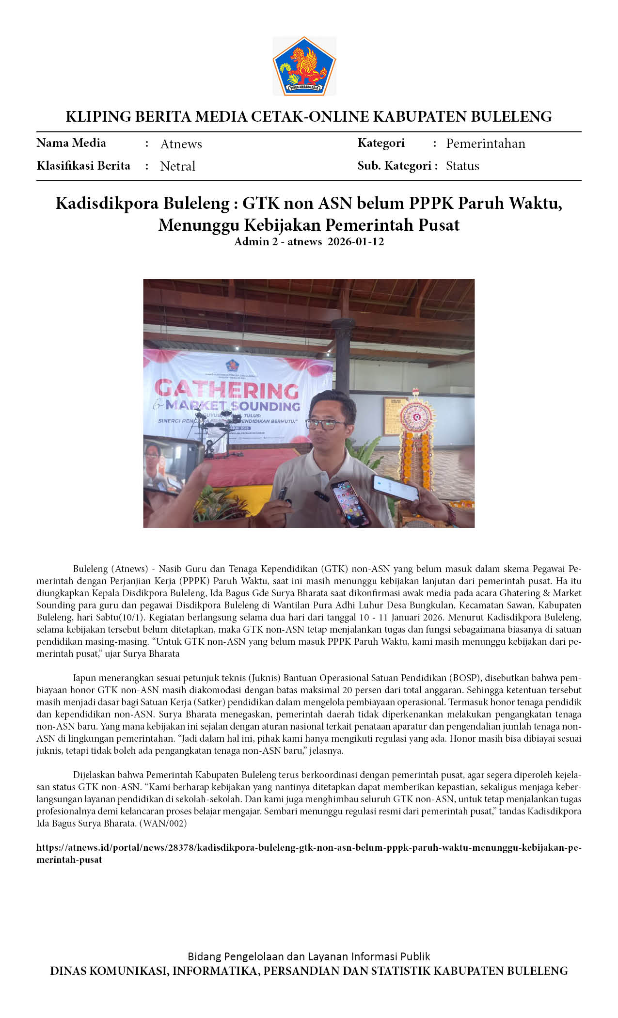 KADISDIKPORA BULELENG : GTK NON ASN BELUM PPPK PARUH WAKTU, MENUNGGU KEBIJAKAN PEMERINTAH PUSAT