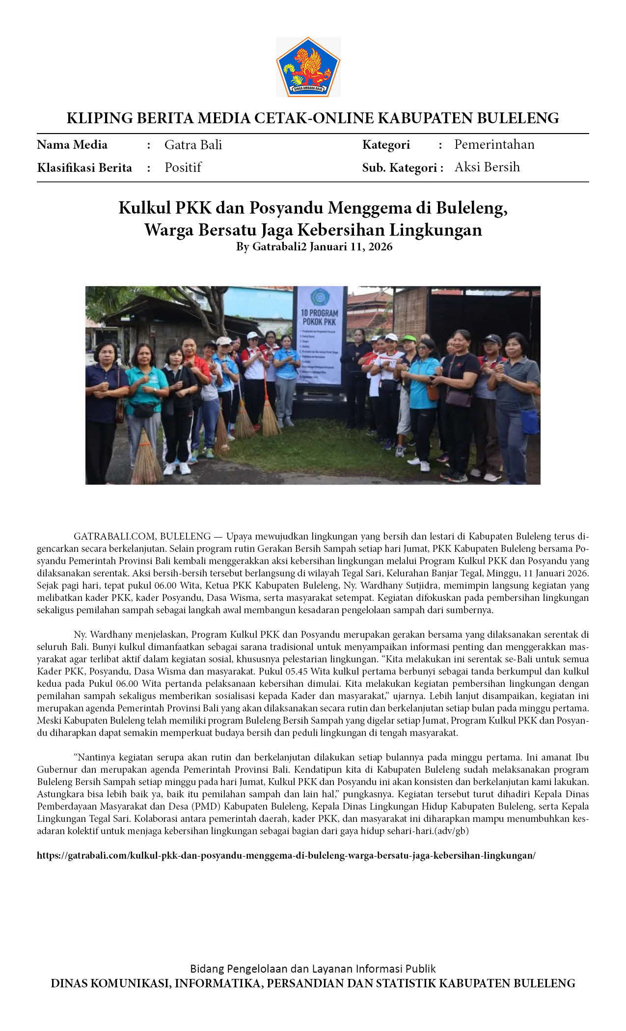KULKUL PKK DAN POSYANDU MENGGEMA DI BULELENG, WARGA BERSATU JAGA KEBERSIHAN LINGKUNGAN