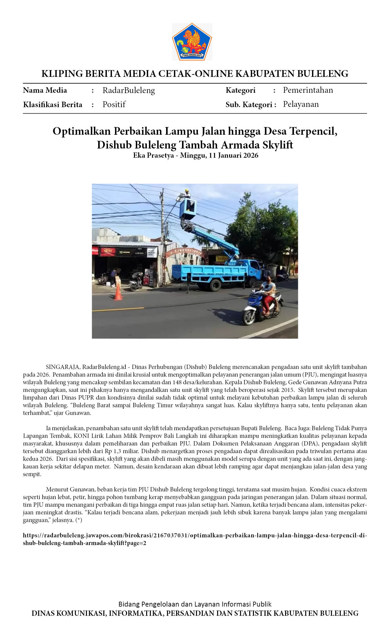 OPTIMALKAN PERBAIKAN LAMPU JALAN HINGGA DESA TERPENCIL, DISHUB BULELENG TAMBAH ARMADA SKYLIFT