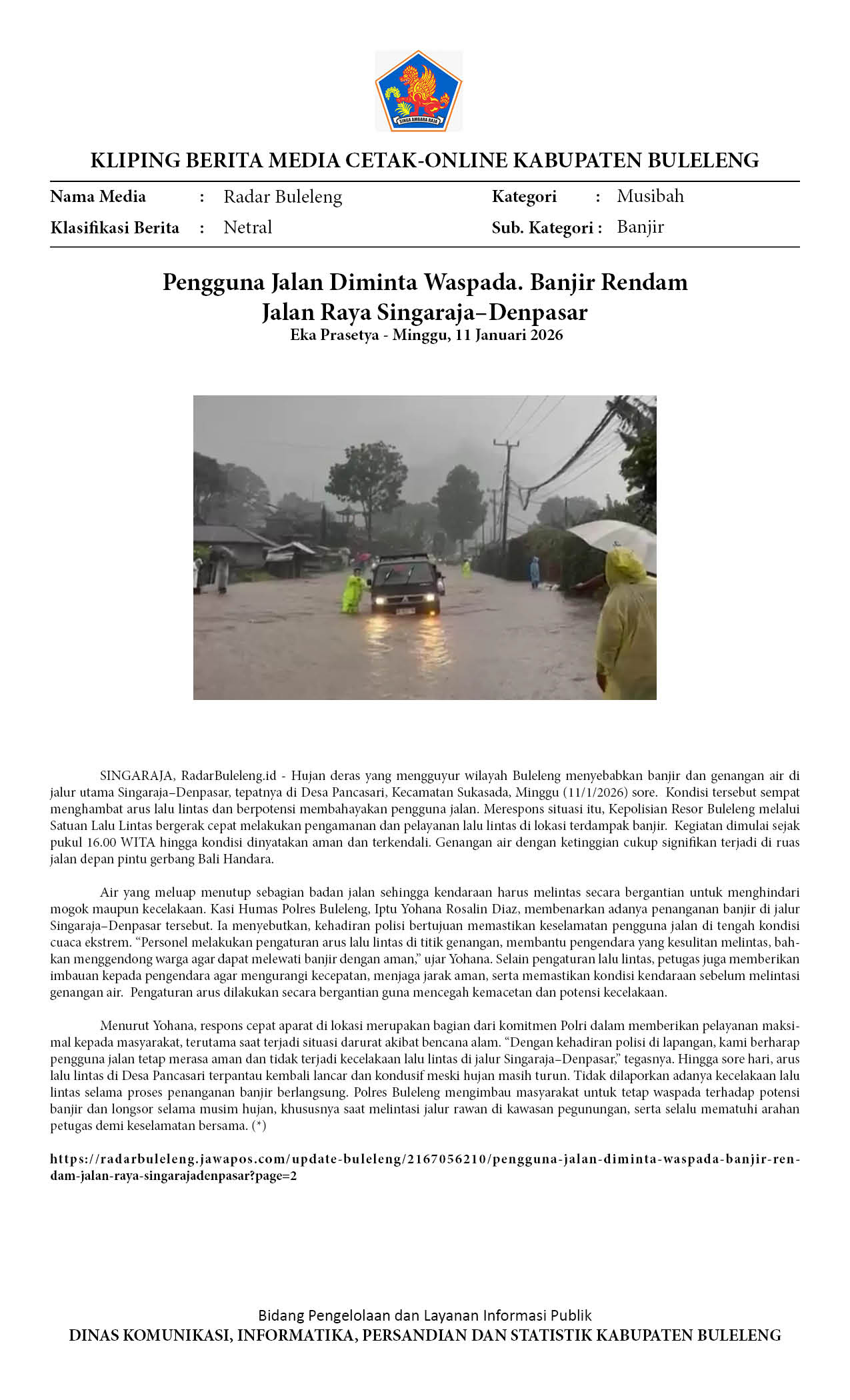 PENGGUNA JALAN DIMINTA WASPADA. BANJIR RENDAM JALAN RAYA SINGARAJA–DENPASAR