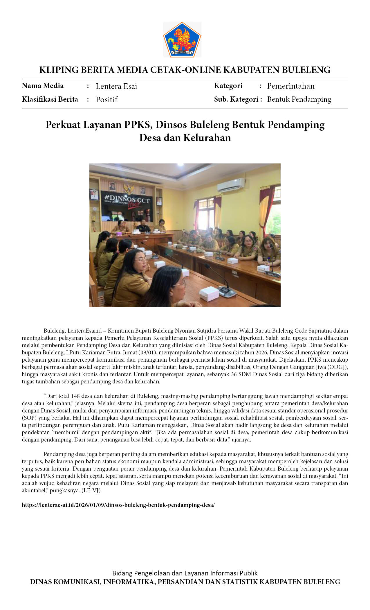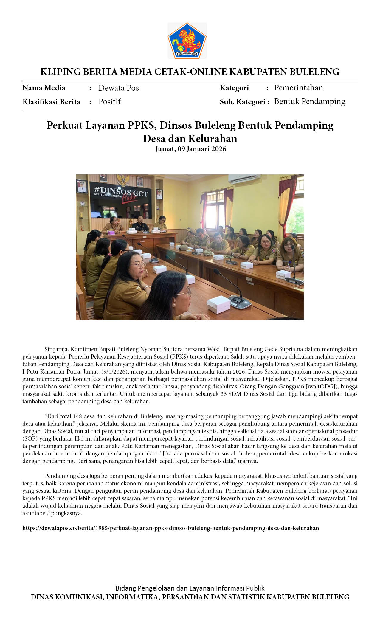 PERKUAT LAYANAN PPKS, DINSOS BULELENG BENTUK PENDAMPING DESA DAN KELURAHAN