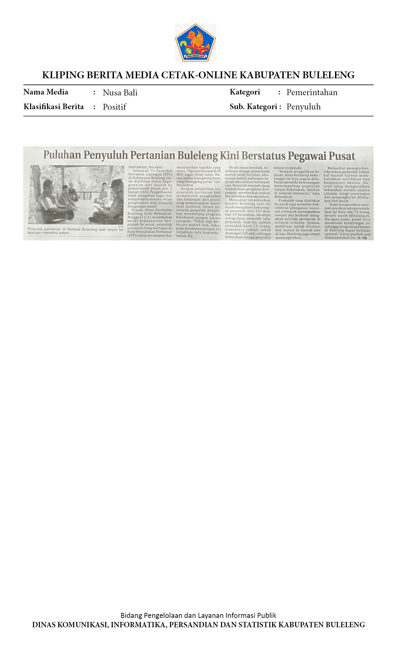 PULUHAN PENYULUH PERTANIAN BULELENG KINI BERSTATUS PEGAWAI PUSAT