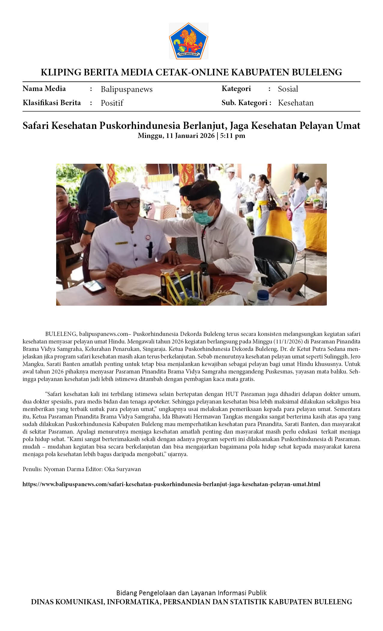 SAFARI KESEHATAN PUSKORHINDUNESIA BERLANJUT, JAGA KESEHATAN PELAYAN UMAT