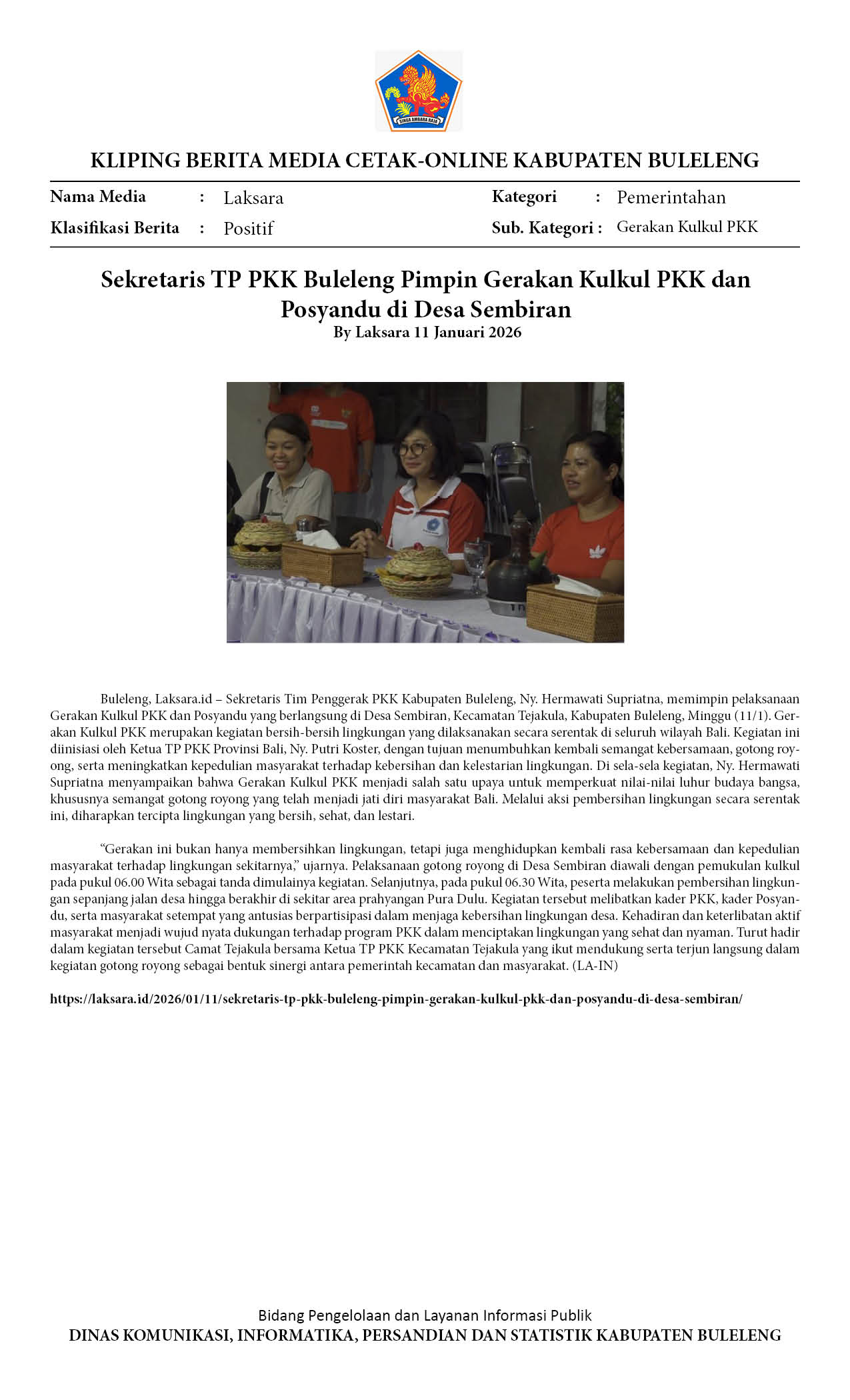 PKK BULELENG PERKUAT KOMITMEN PEDULI LINGKUNGAN LEWAT PROGRAM KULKUL PKK DAN POSYANDU