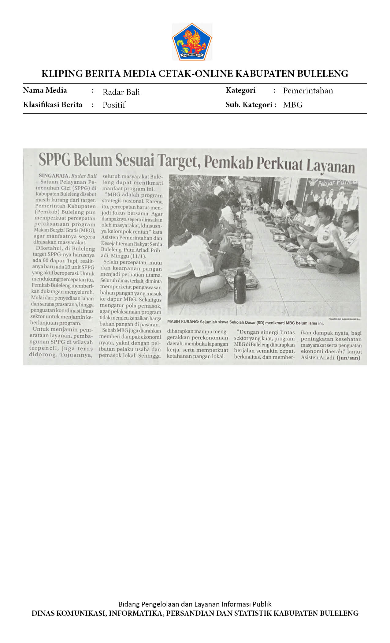 SPPG BELUM SESUAI TARGET, PEMKAB PERKUAT LAYANAN
