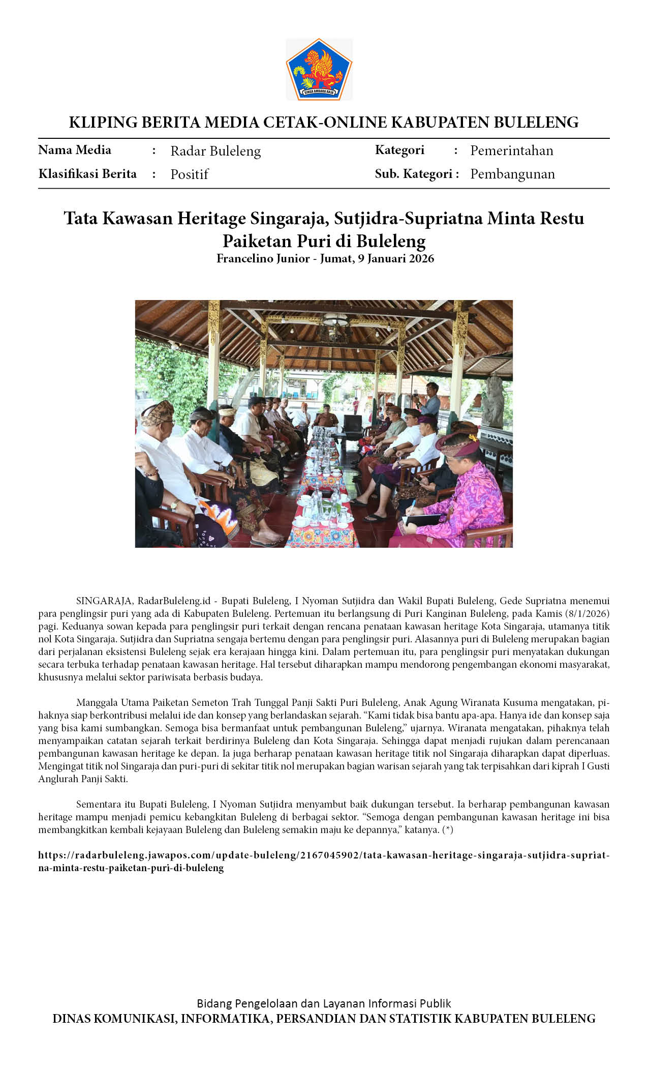 TATA KAWASAN HERITAGE SINGARAJA, SUTJIDRA-SUPRIATNA MINTA RESTU PAIKETAN PURI DI BULELENG