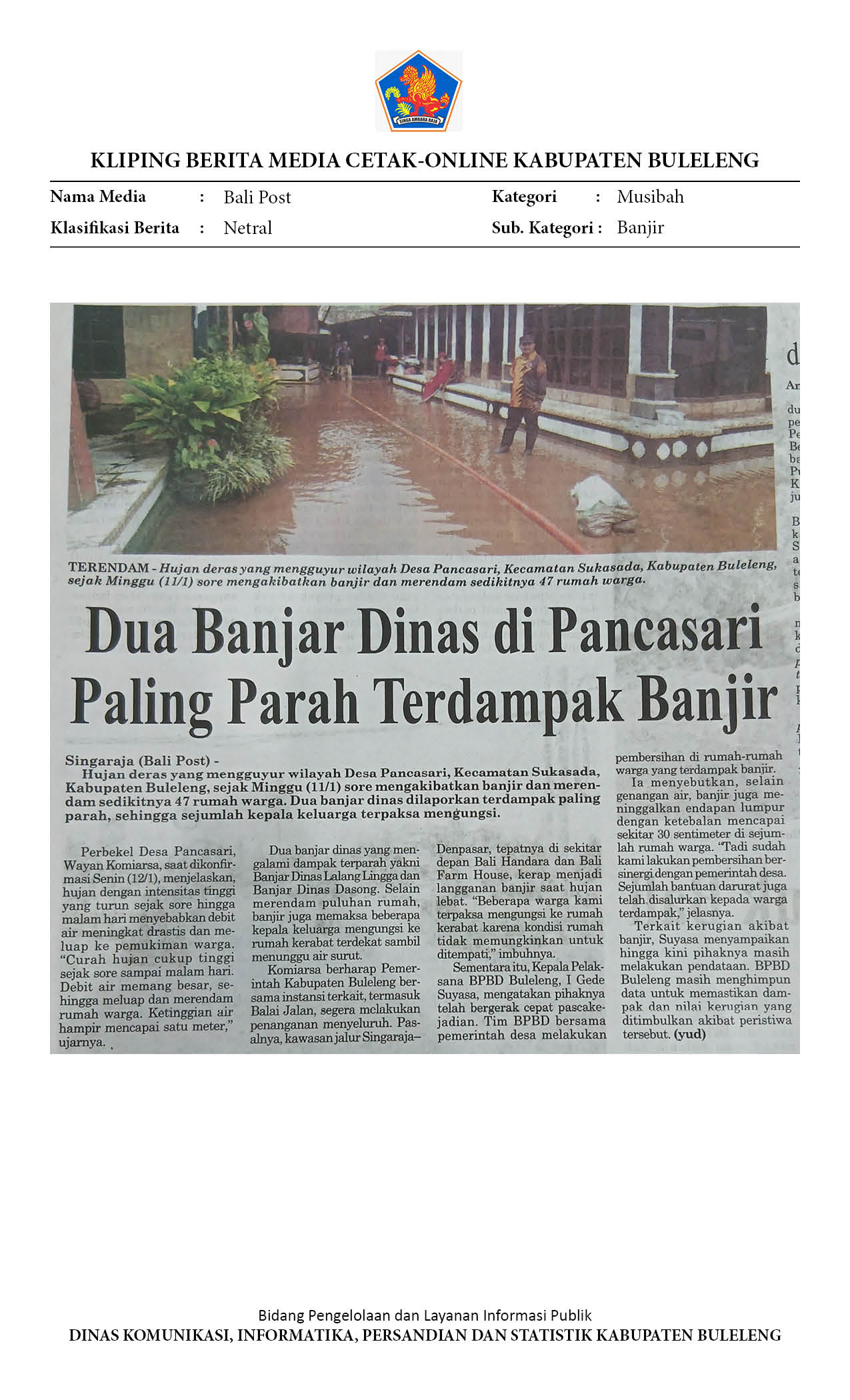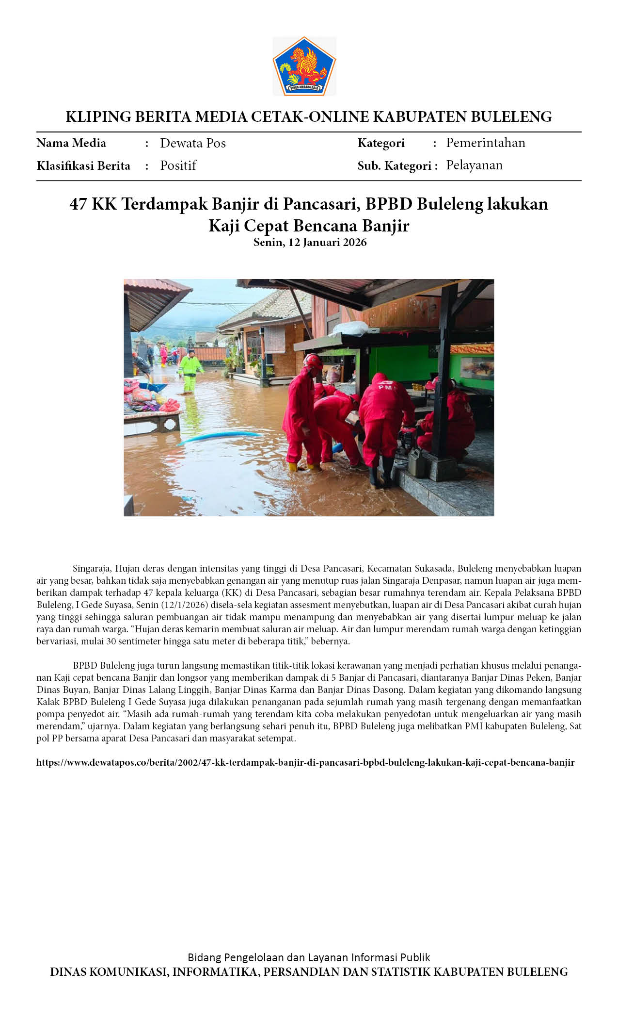 47 KK TERDAMPAK BANJIR DI PANCASARI, BPBD BULELENG LAKUKAN KAJI CEPAT BENCANA BANJIR