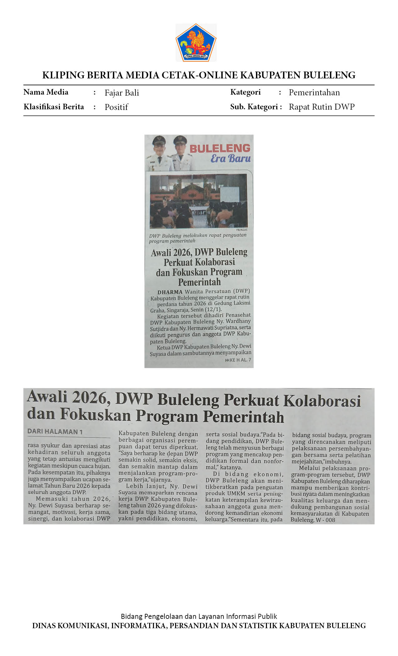 AWALI 2026, DWP BULELENG PERKUAT KOLABORASI DAN FOKUSKAN PROGRAM PEMERINTAH