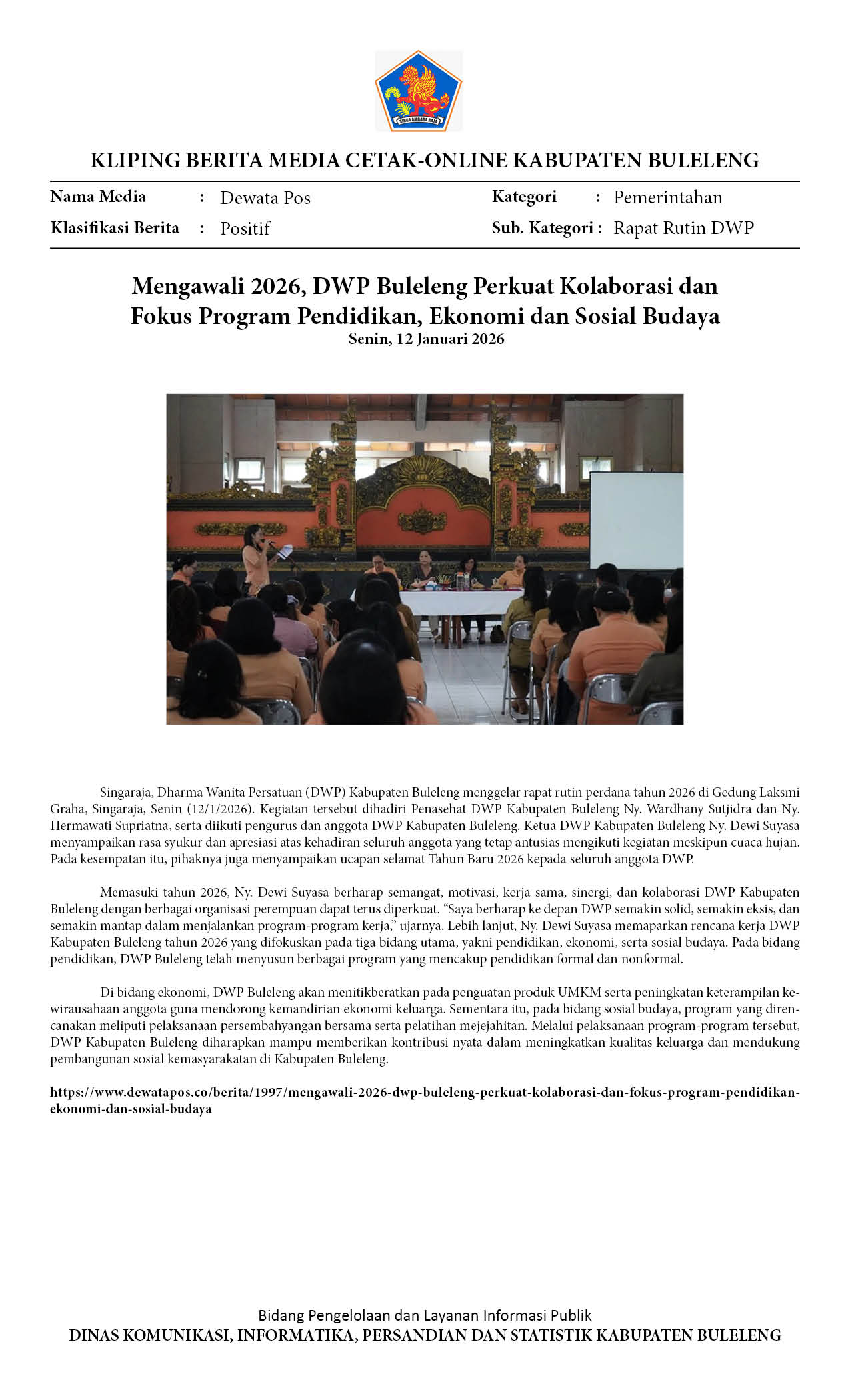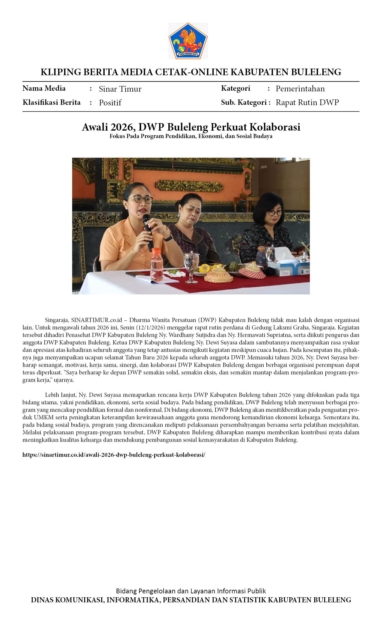 AWALI 2026, DWP BULELENG PERKUAT KOLABORASI DAN FOKUSKAN PROGRAM PENDIDIKAN, EKONOMI, DAN SOSIAL BUDAYA