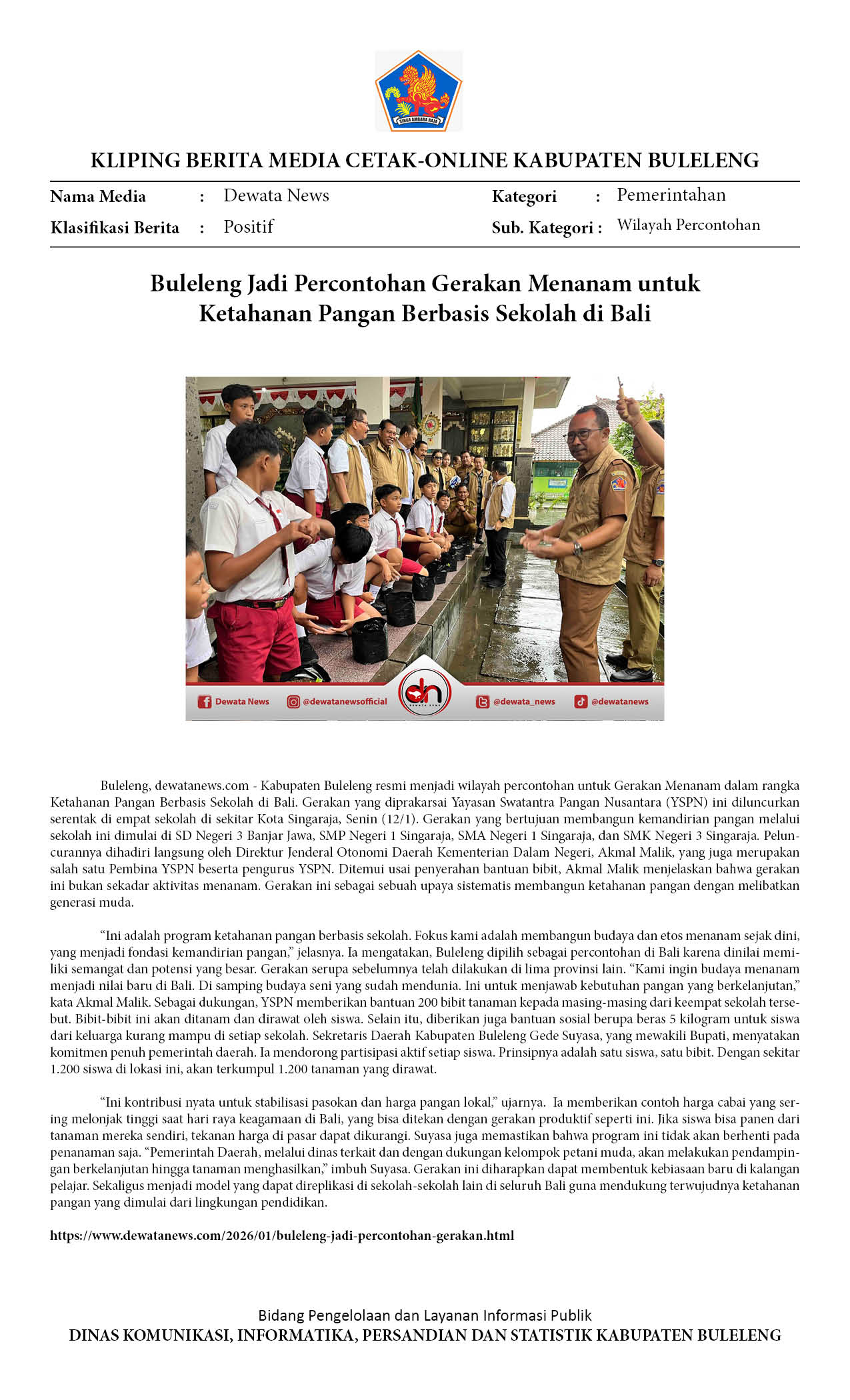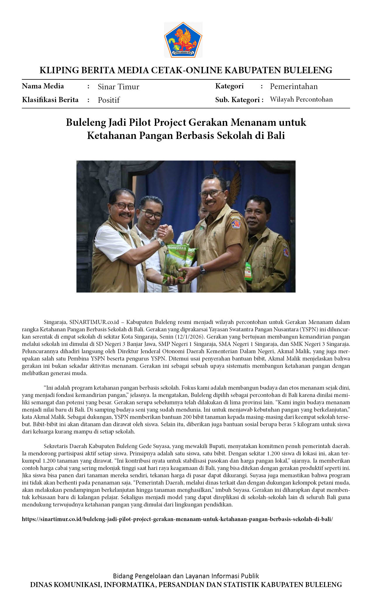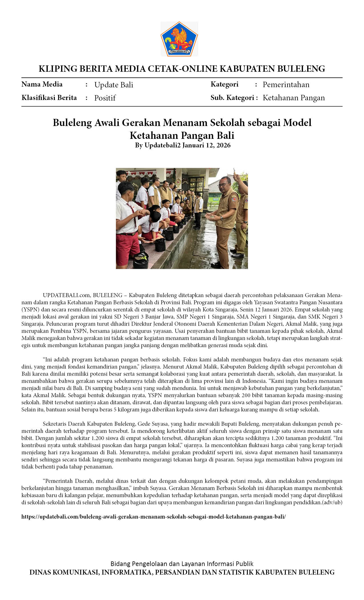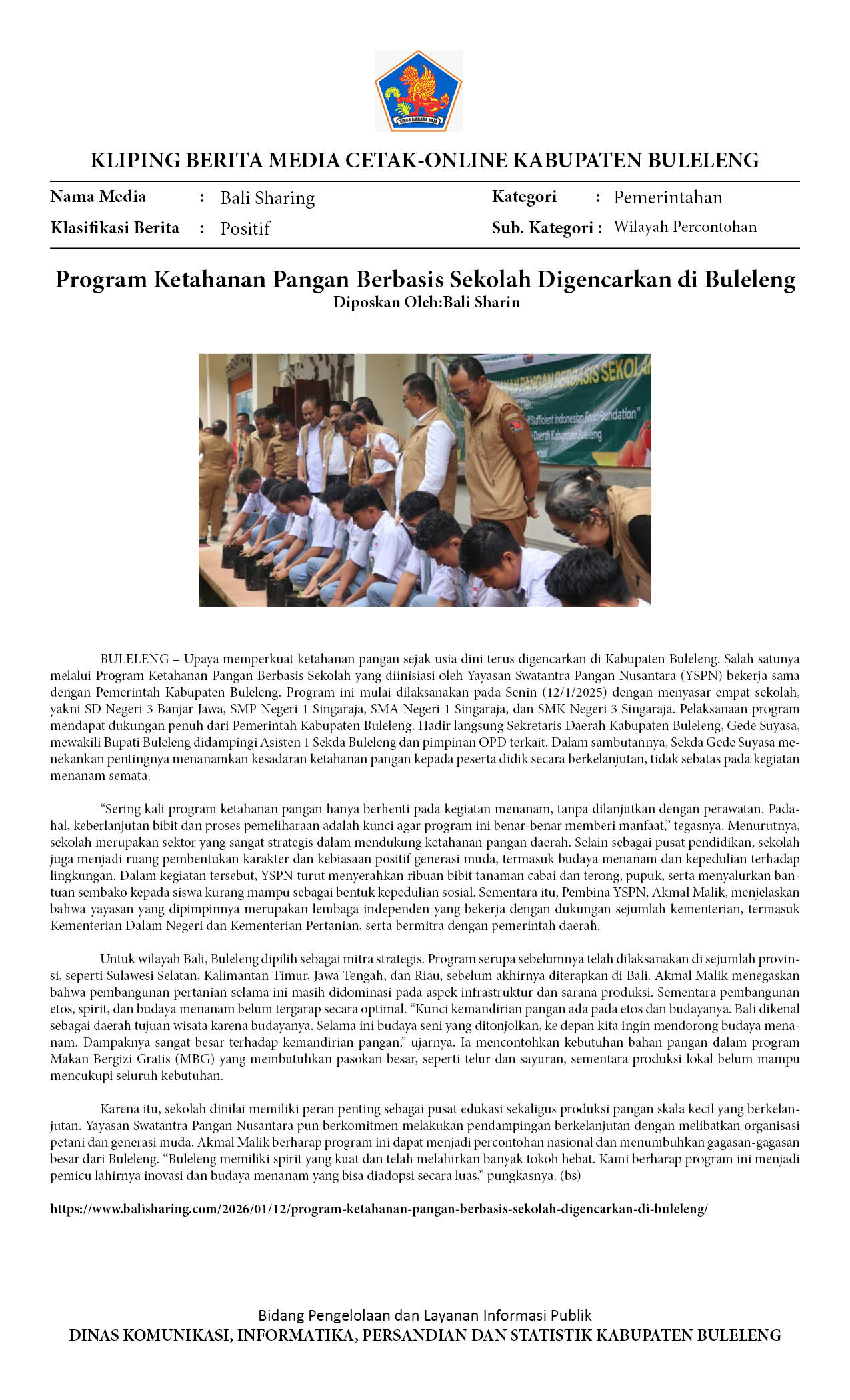 BULELENG AWALI GERAKAN MENANAM SEKOLAH SEBAGAI MODEL KETAHANAN PANGAN BALI