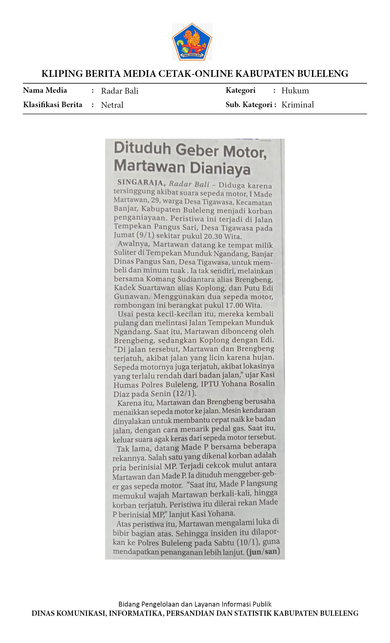 DITUDUH GEBER MOTOR, MARTAWAN DIANIAYA