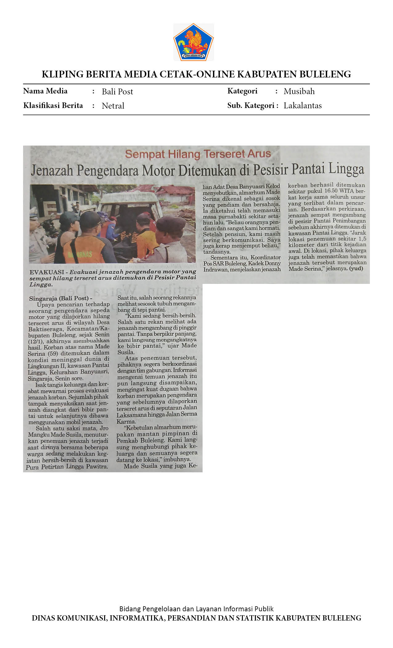 JASAD MADE SERINA DITEMUKAN TERDAMPAR DI PANTAI LINGGA