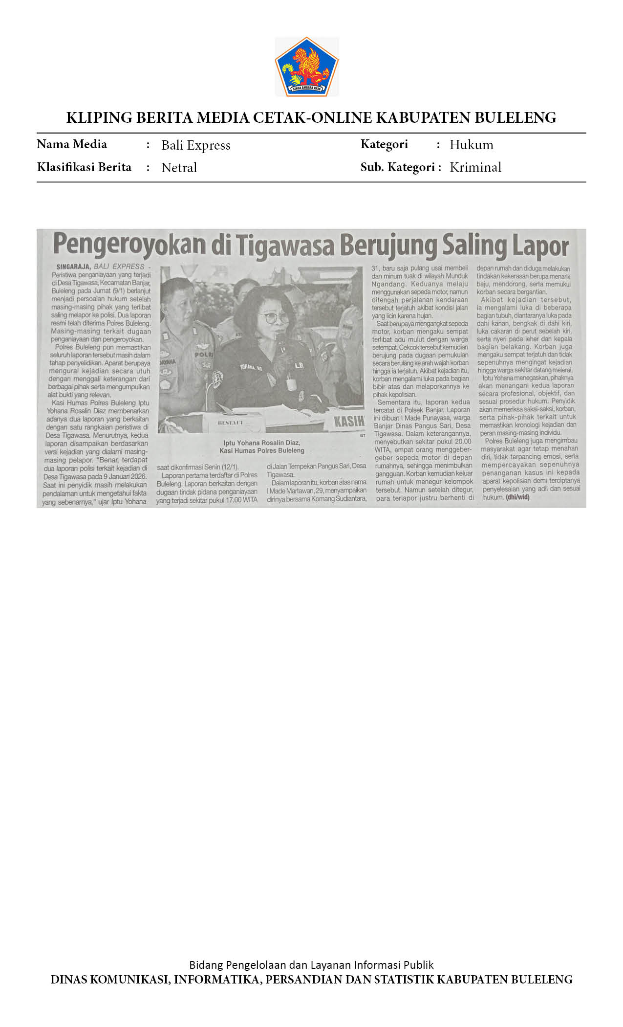 PENGEROYOKAN DI TIGAWASA BERUJUNG SALING LAPOR