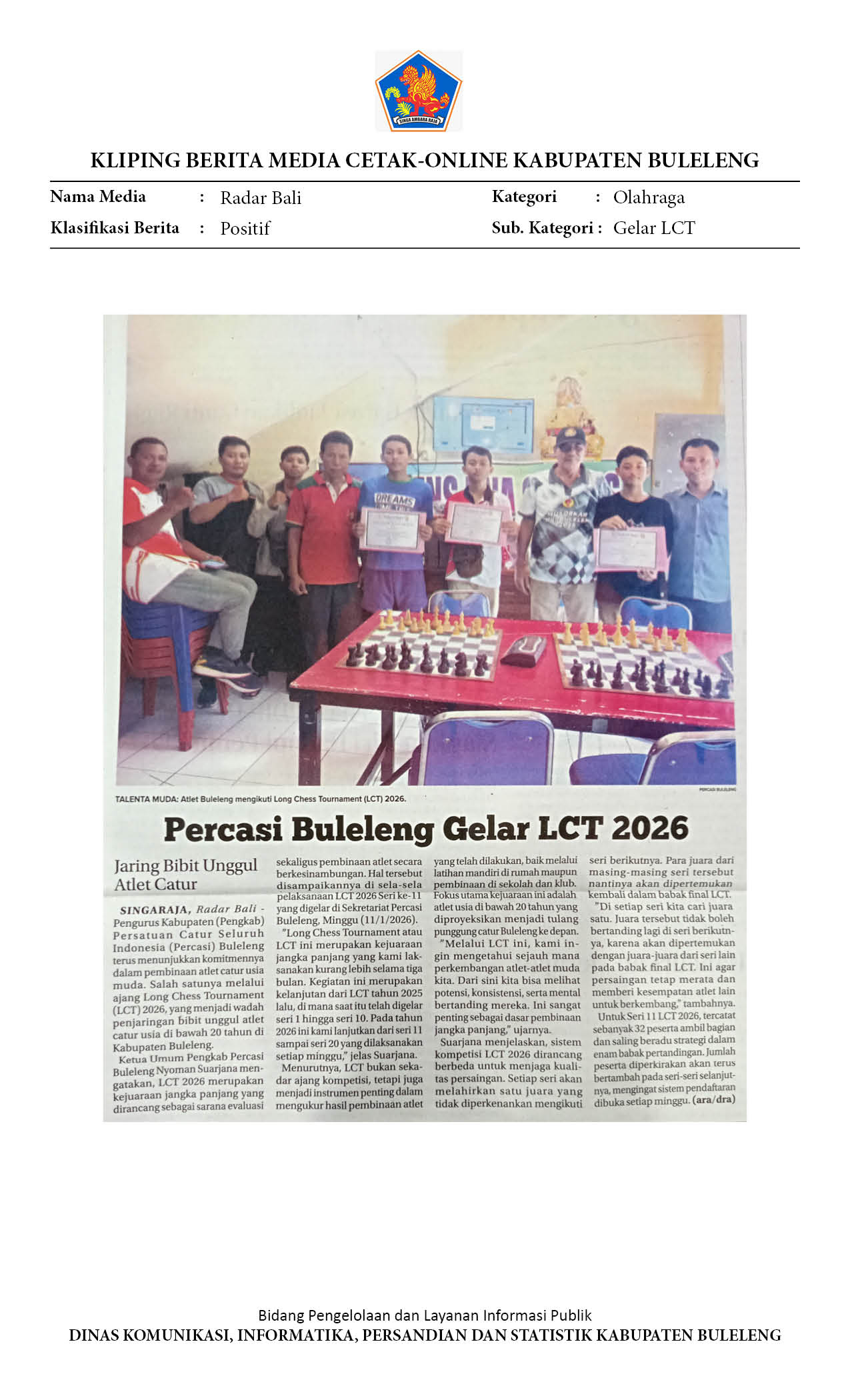 PERCASI BULELENG GELAR LCT 2026