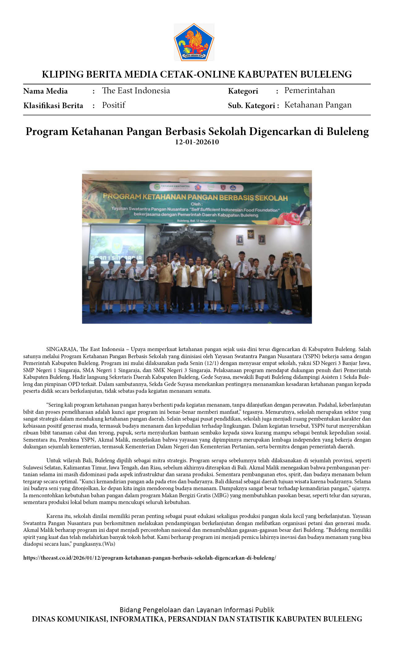 PROGRAM KETAHANAN PANGAN BERBASIS SEKOLAH DIGENCARKAN DI BULELENG