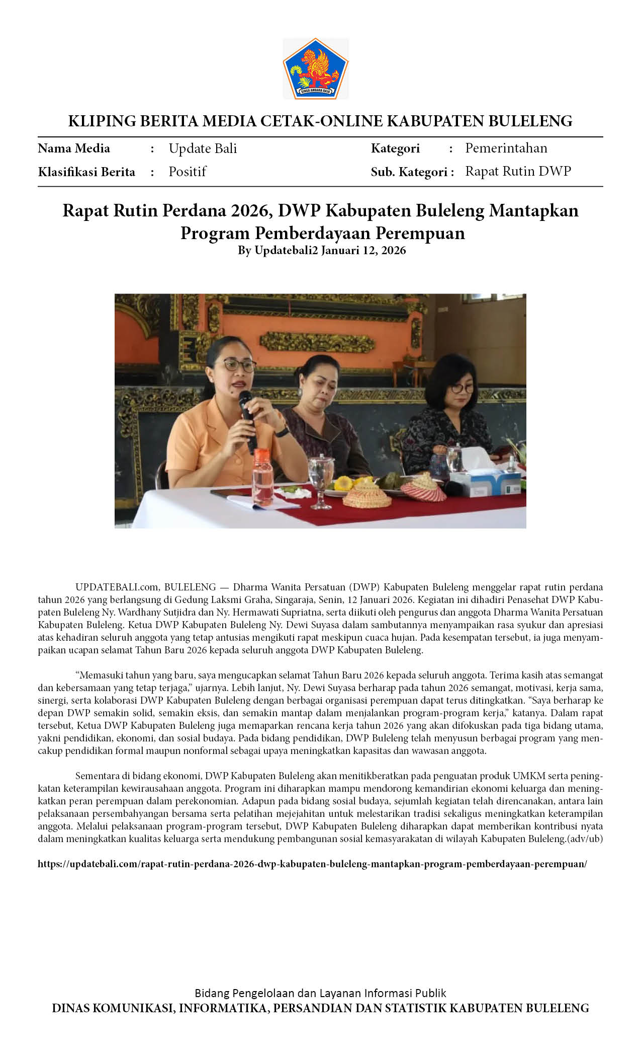 RAPAT RUTIN PERDANA 2026, DWP KABUPATEN BULELENG MANTAPKAN PROGRAM PEMBERDAYAAN PEREMPUAN