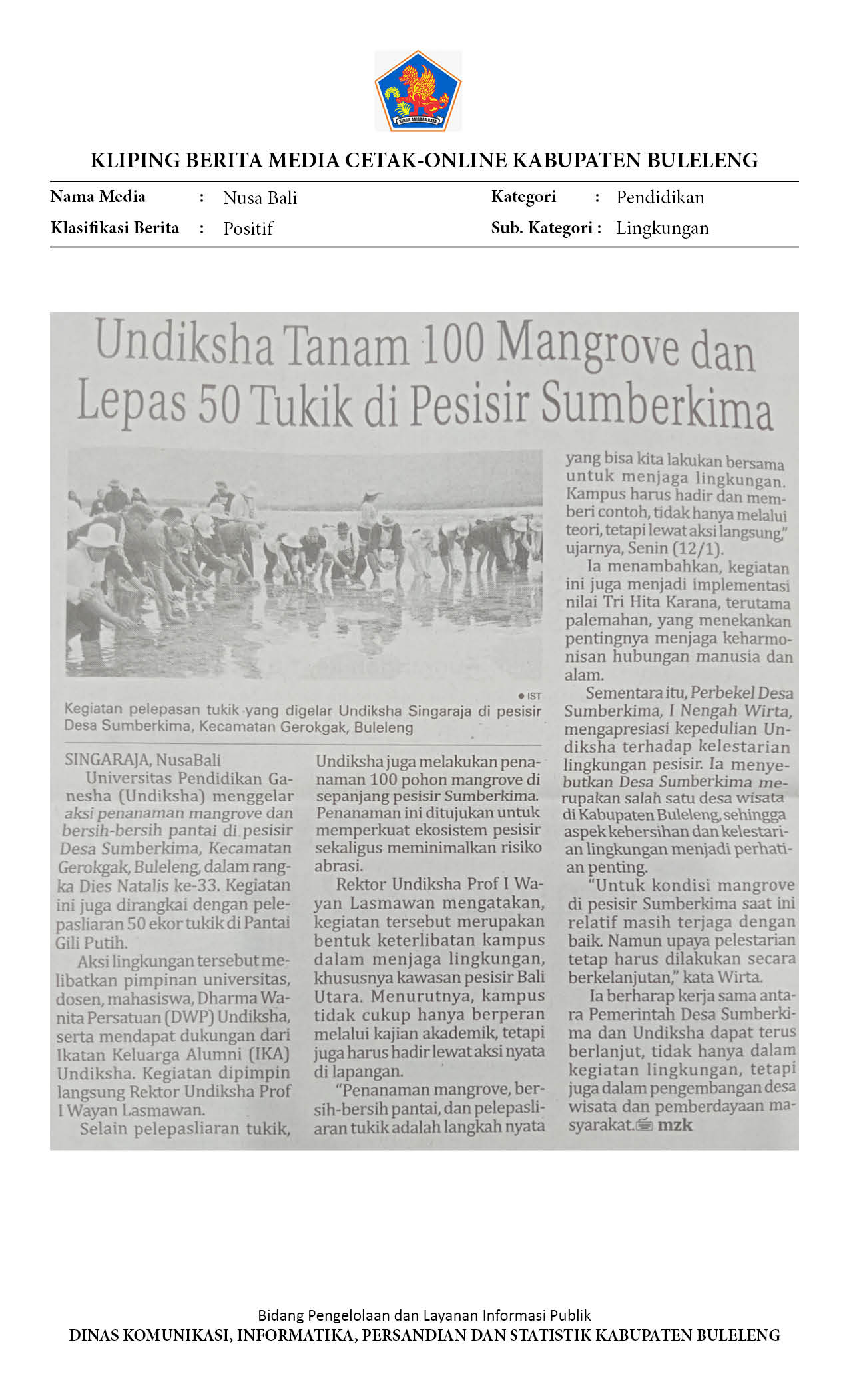 UNDIKSHA TANAM 100 MANGROVE DAN LEPAS 50 TUKIK DI PESISIR SUMBERKIMA