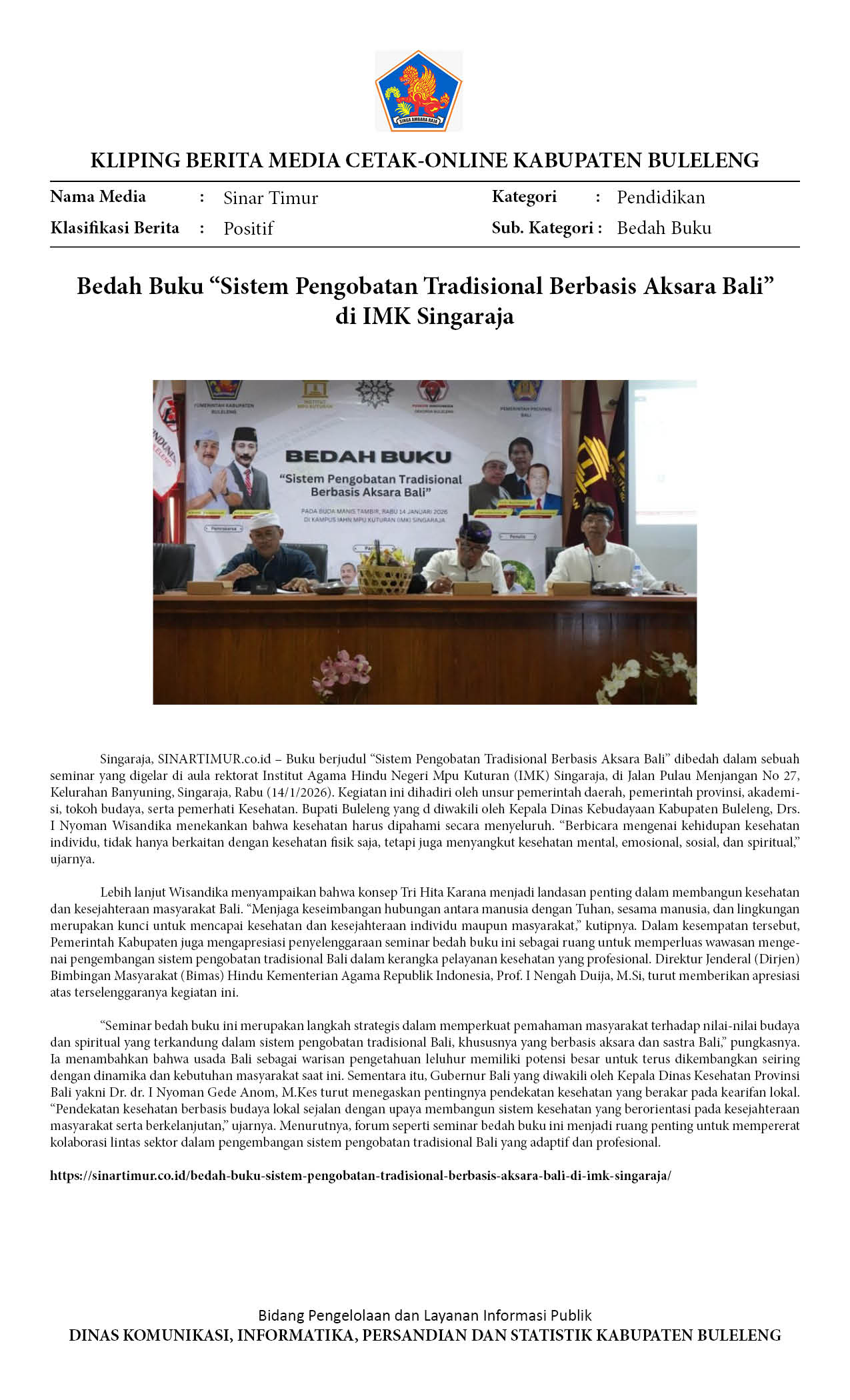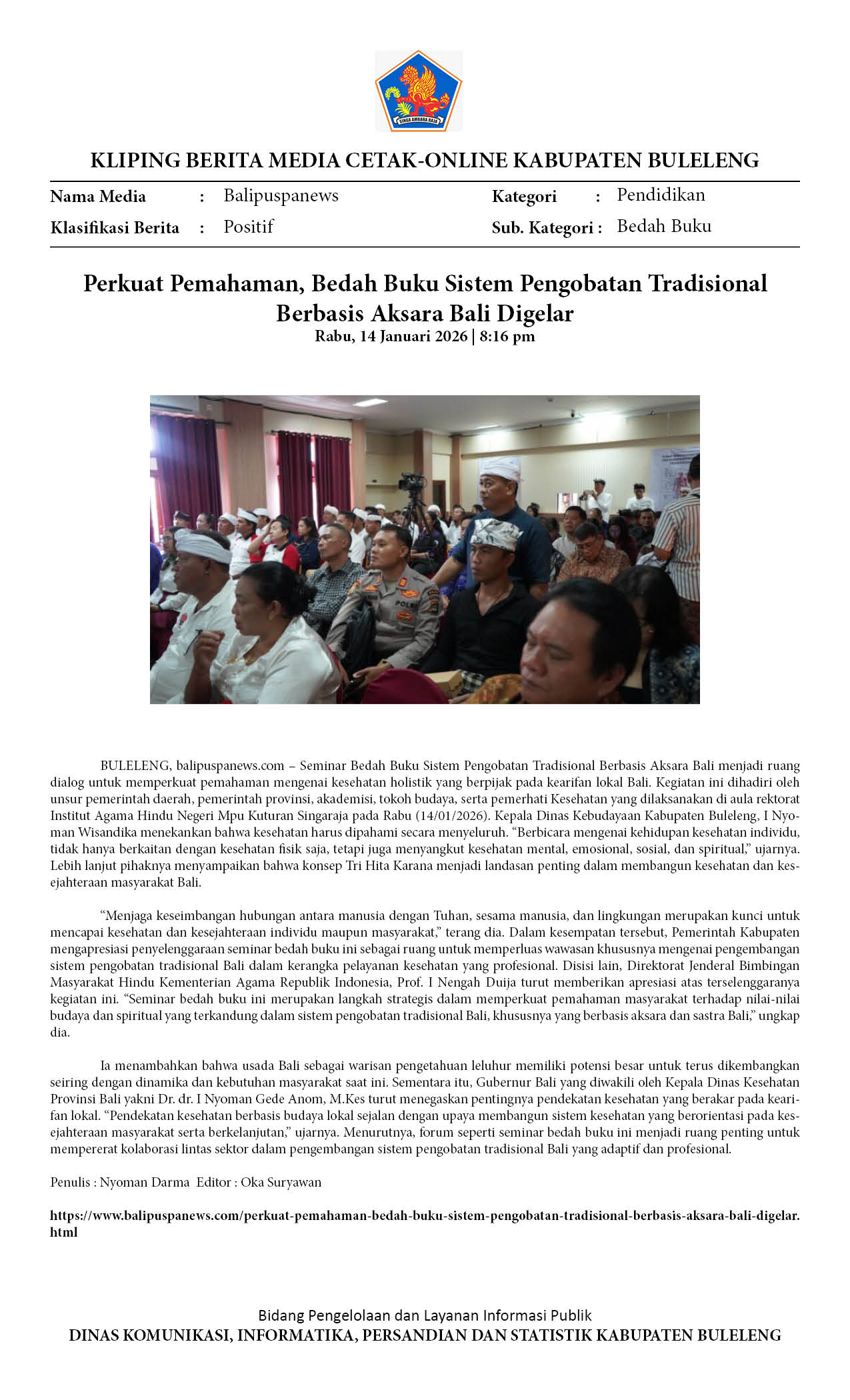 PERKUAT PEMAHAMAN, BEDAH BUKU SISTEM PENGOBATAN TRADISIONAL BERBASIS AKSARA BALI DIGELAR