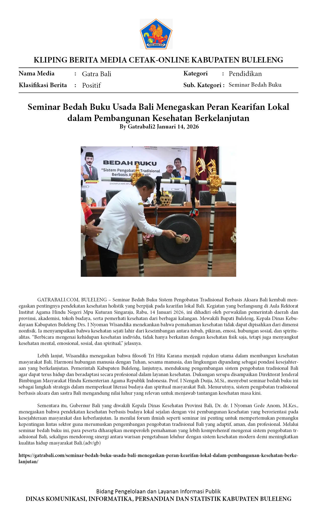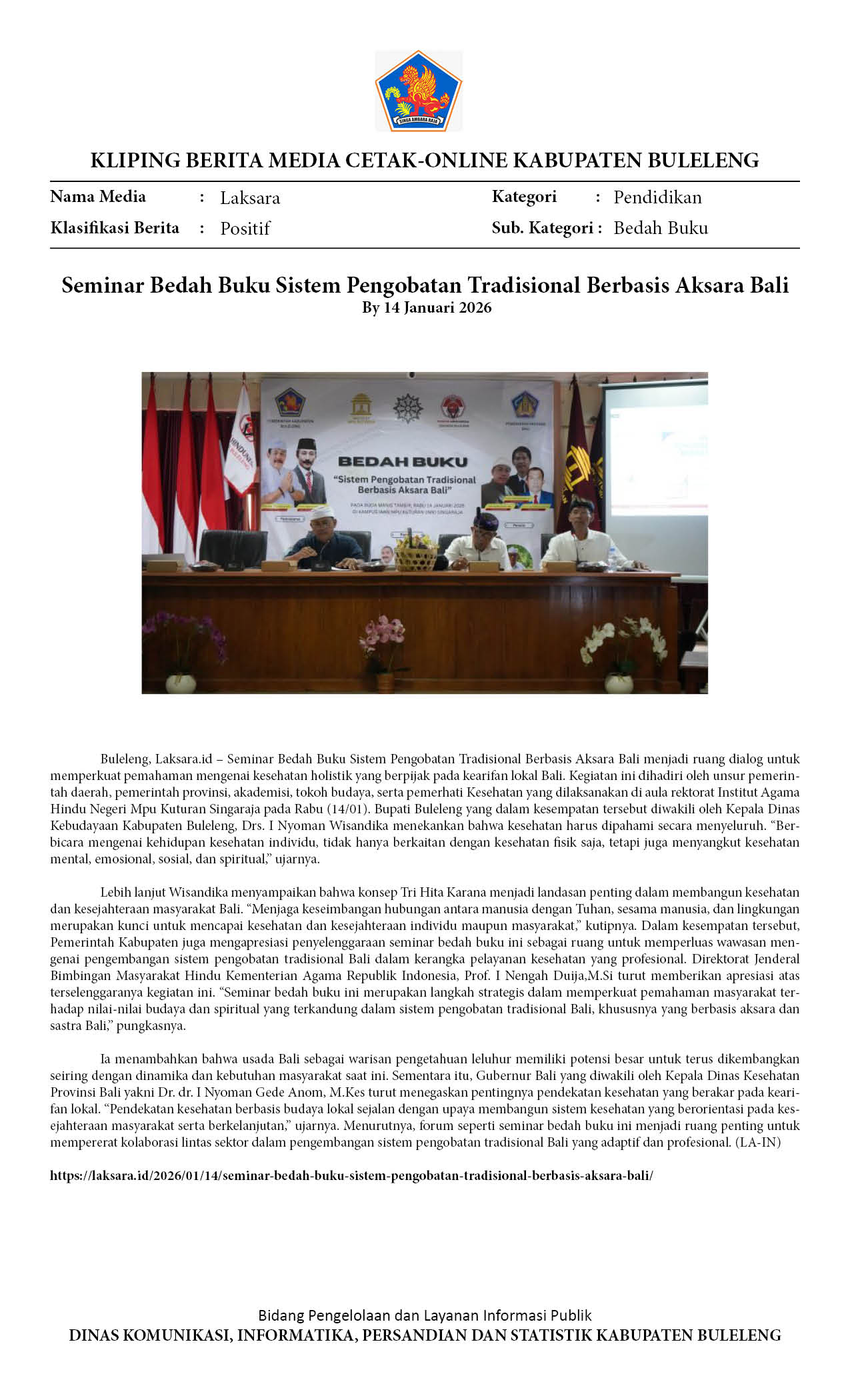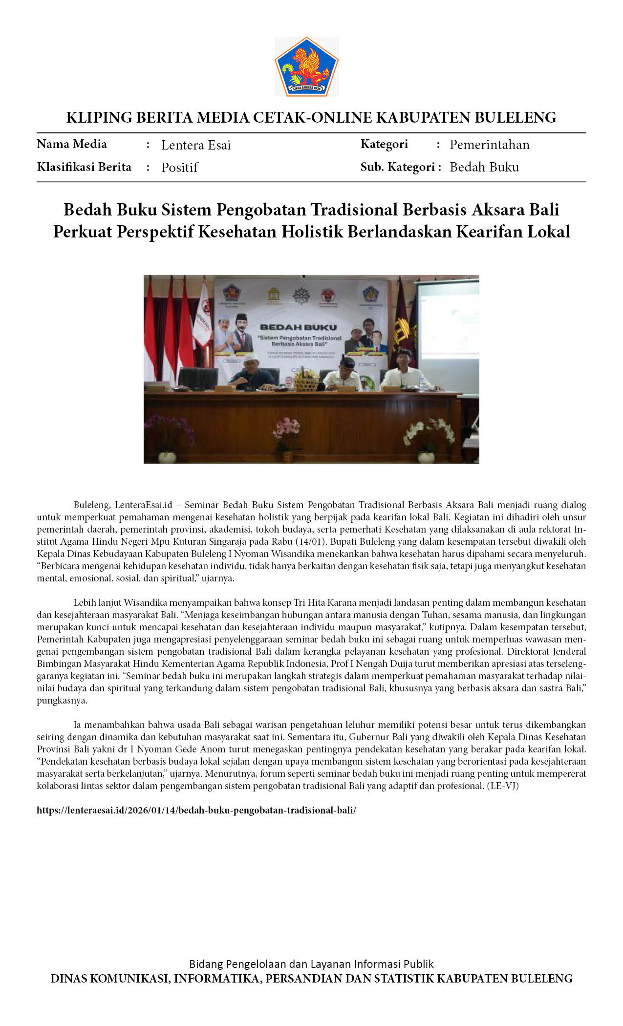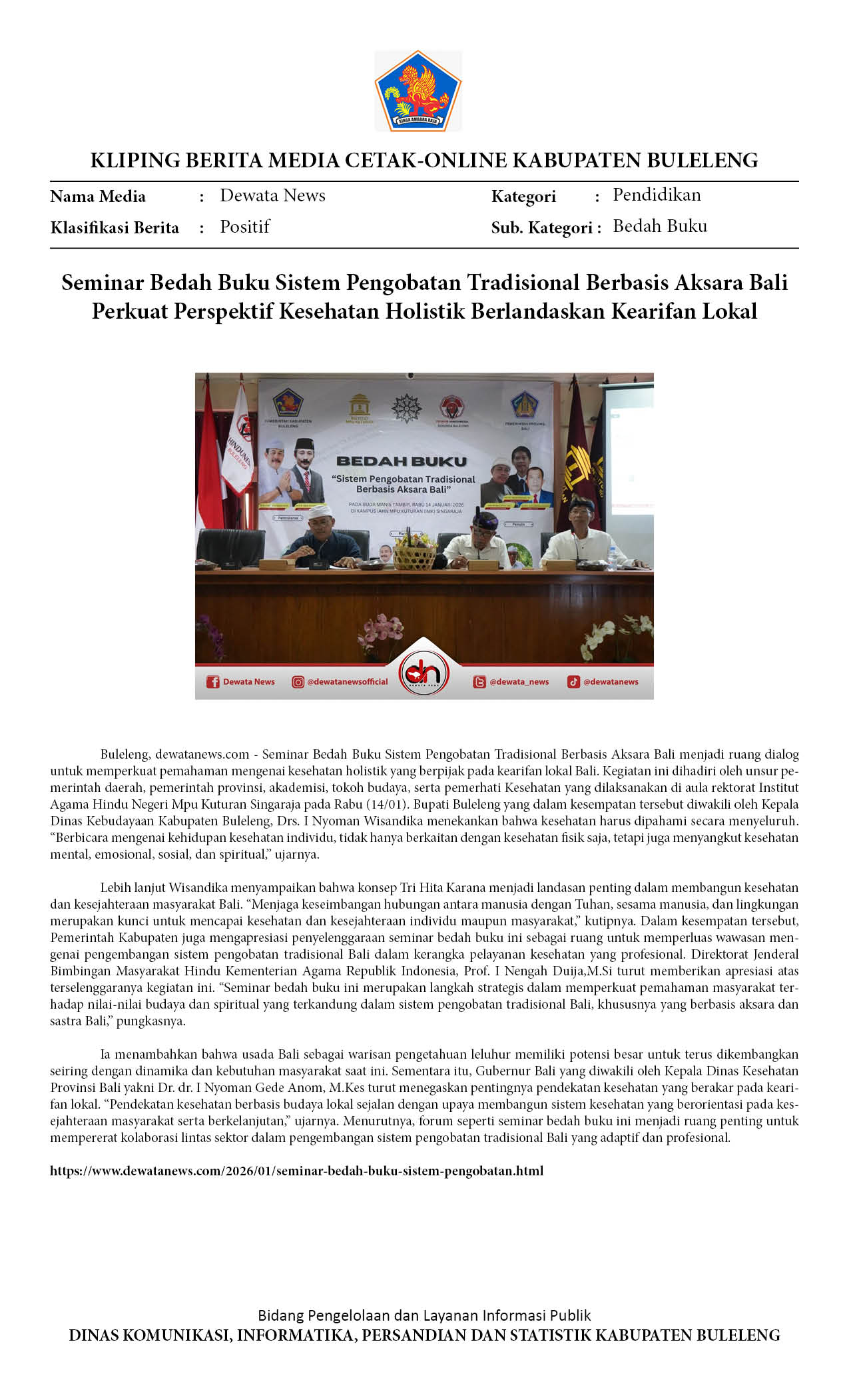 BEDAH BUKU SISTEM PENGOBATAN TRADISIONAL BERBASIS AKSARA BALI PERKUAT PERSPEKTIF KESEHATAN HOLISTIK BERLANDASKAN KEARIFAN LOKAL