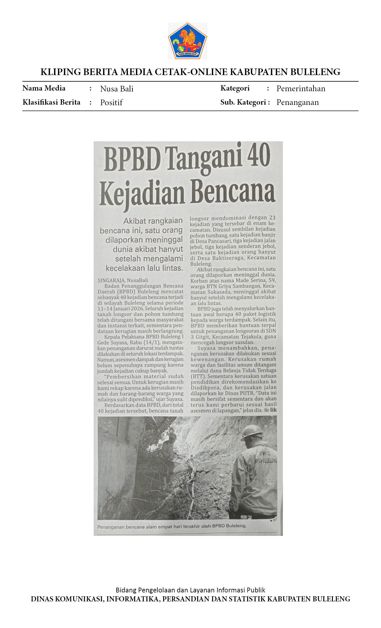 BPBD TANGANI 40 KEJADIAN BENCANA