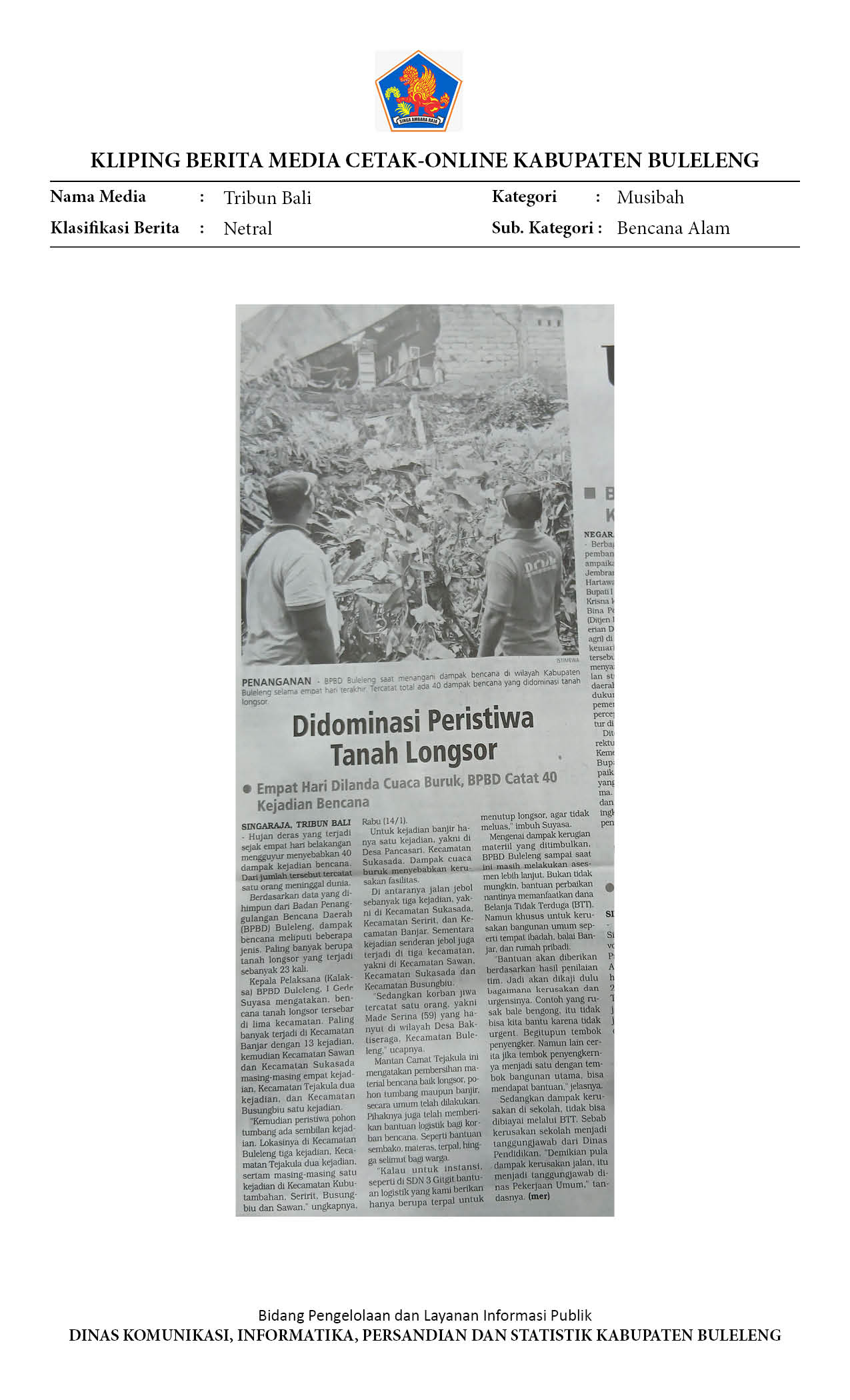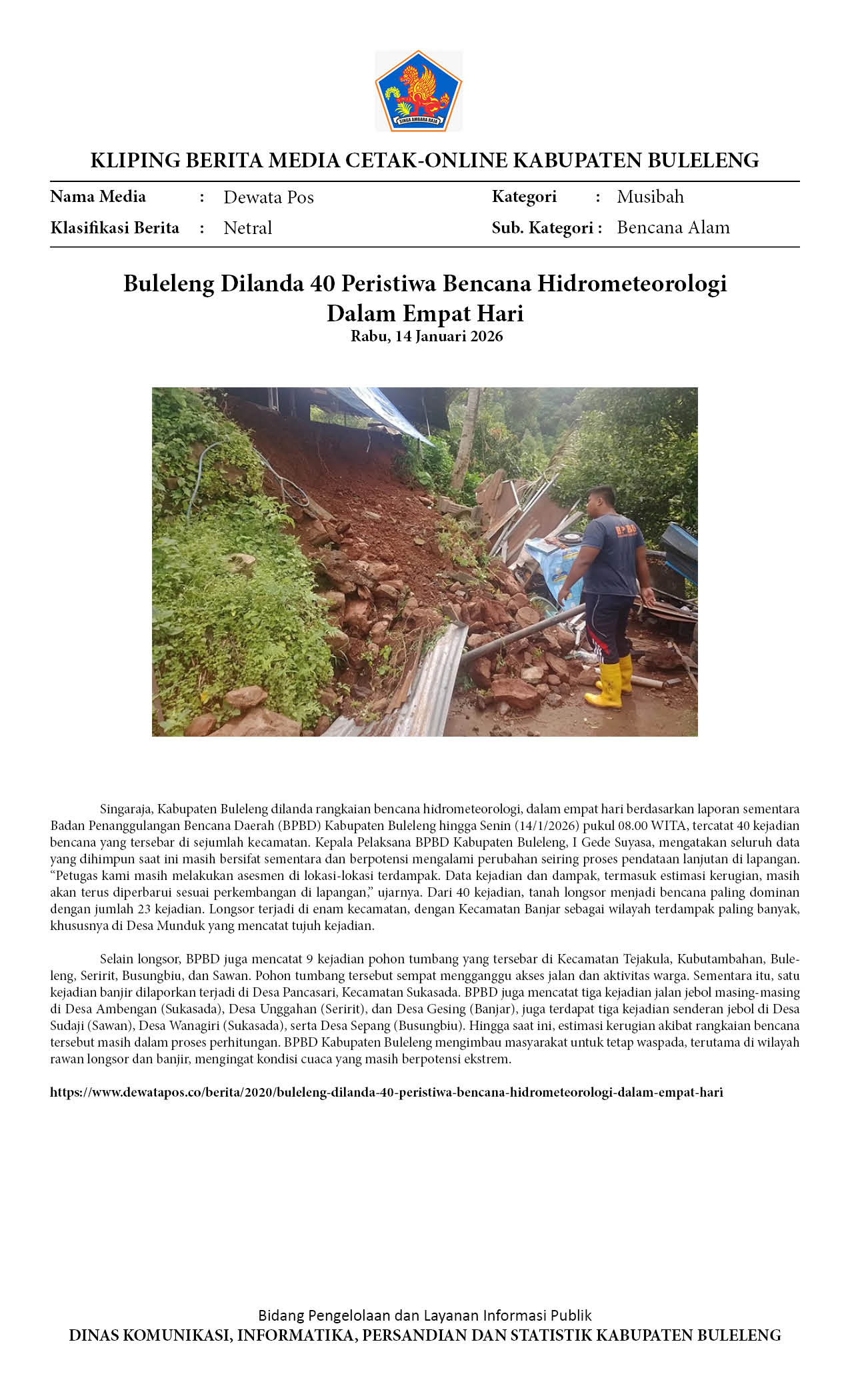 BULELENG DILANDA 40 PERISTIWA BENCANA HIDROMETEOROLOGI DALAM EMPAT HARI