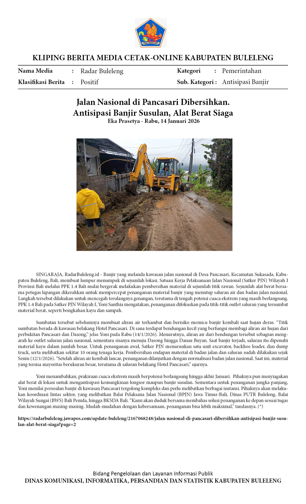 JALAN NASIONAL DI PANCASARI DIBERSIHKAN. ANTISIPASI BANJIR SUSULAN, ALAT BERAT SIAGA