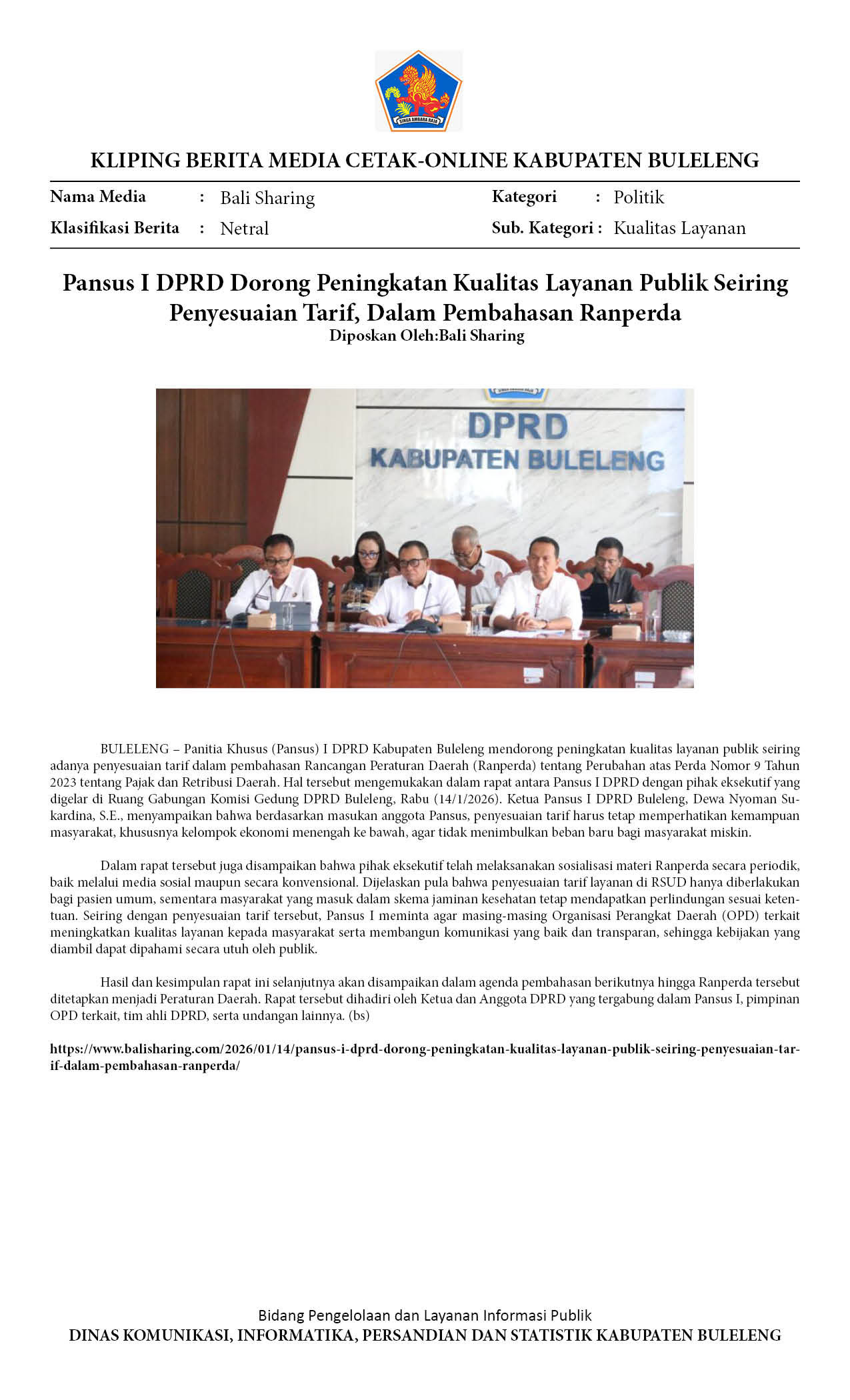 PANSUS I DPRD DORONG PENINGKATAN KUALITAS LAYANAN PUBLIK SEIRING PENYESUAIAN TARIF, DALAM PEMBAHASAN RANPERDA