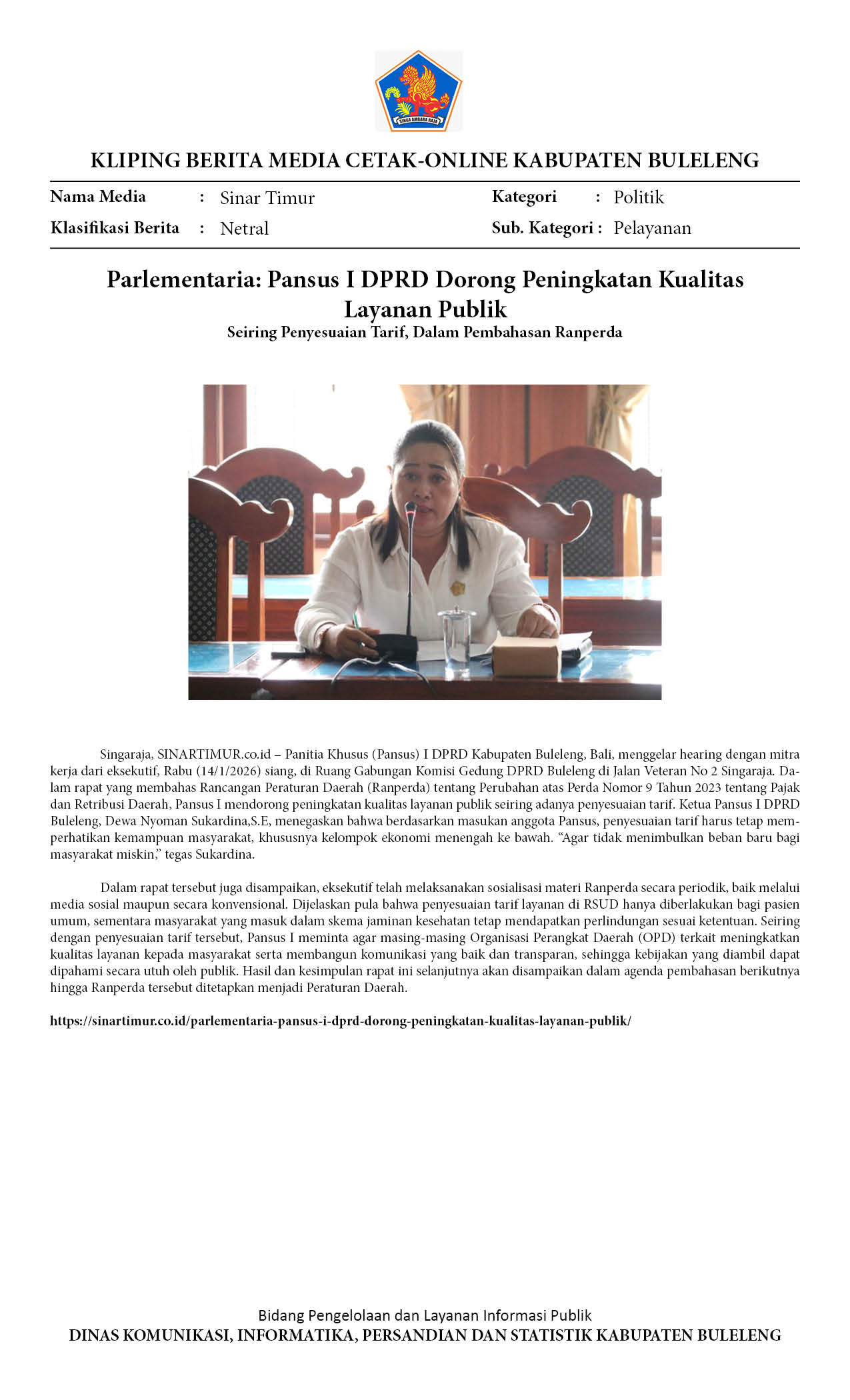 PARLEMENTARIA: PANSUS I DPRD DORONG PENINGKATAN KUALITAS LAYANAN PUBLIK