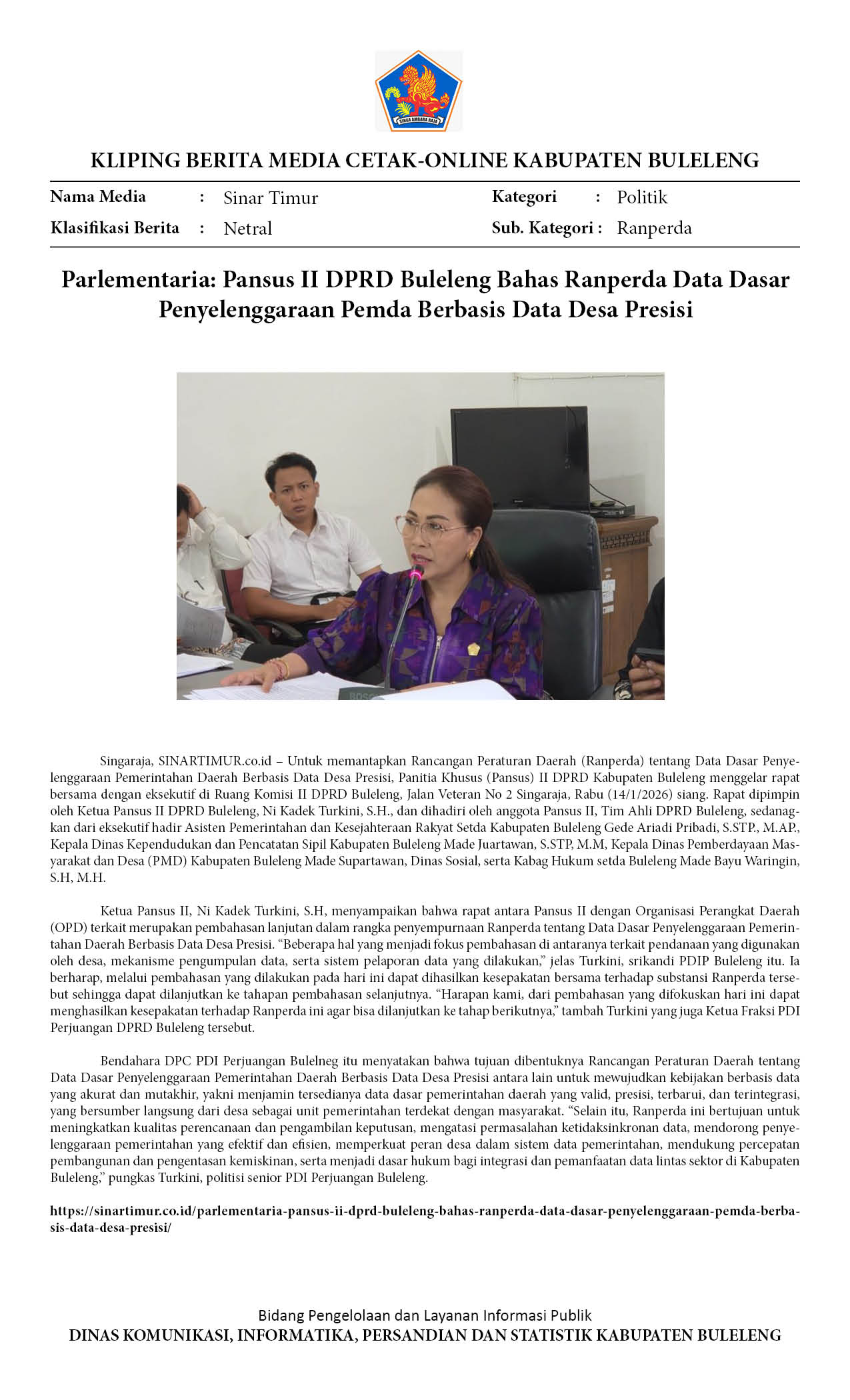PARLEMENTARIA: PANSUS II DPRD BULELENG BAHAS RANPERDA DATA DASAR PENYELENGGARAAN PEMDA BERBASIS DATA DESA PRESISI