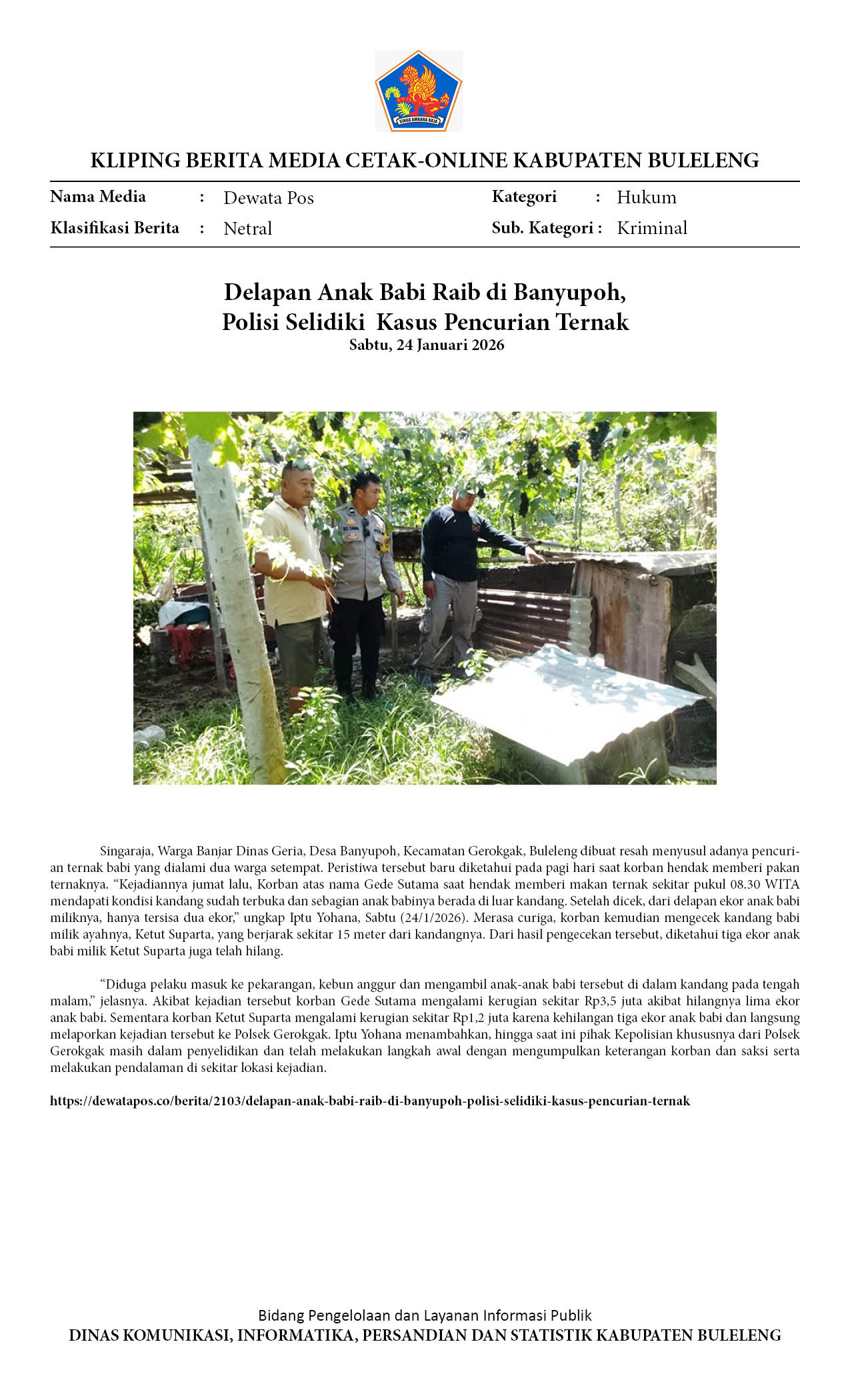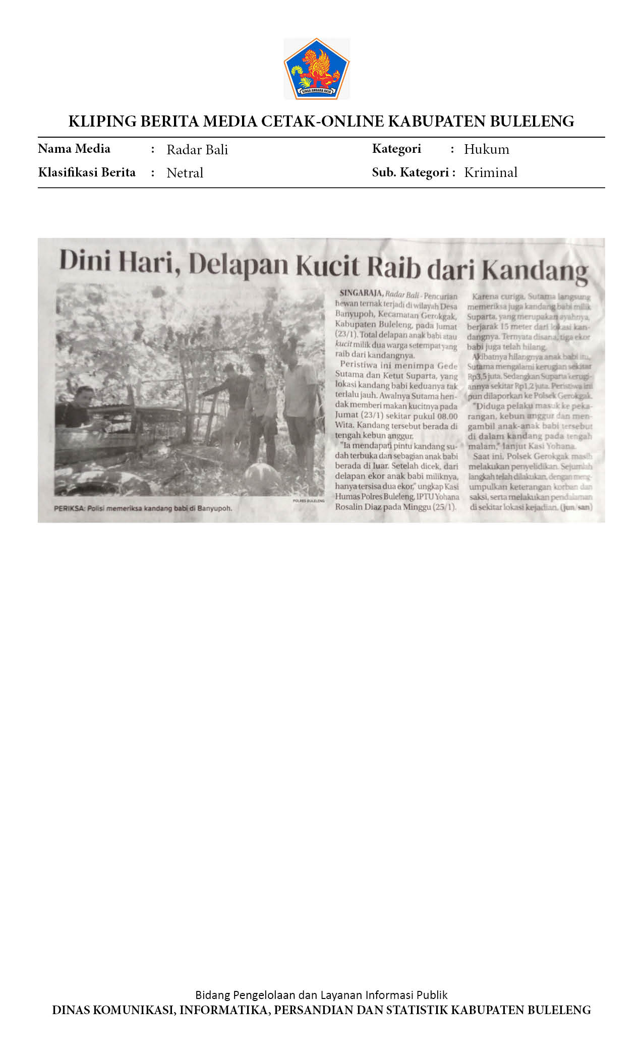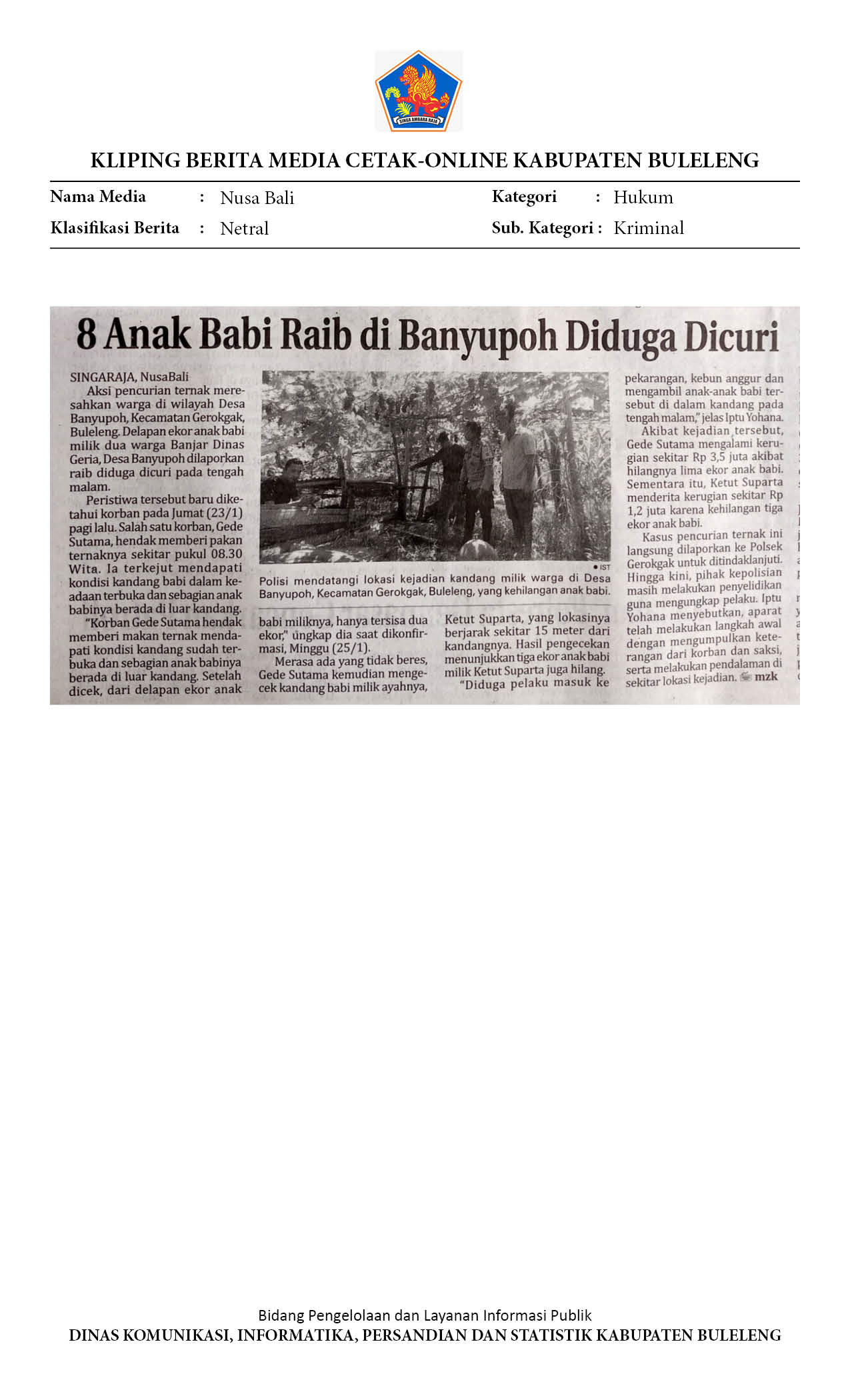 DELAPAN ANAK BABI RAIB DI BANYUPOH, POLISI SELIDIKI KASUS PENCURIAN TERNAK