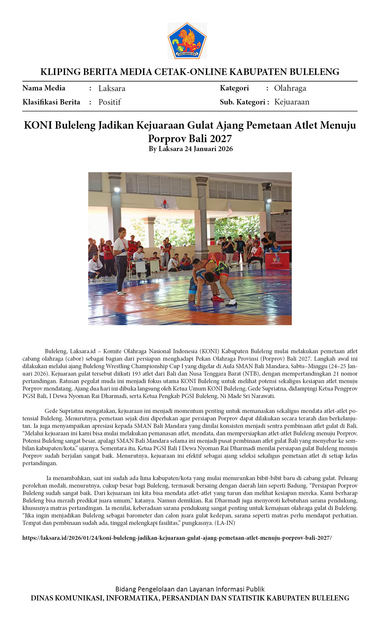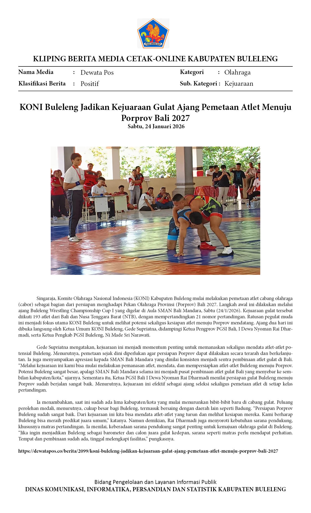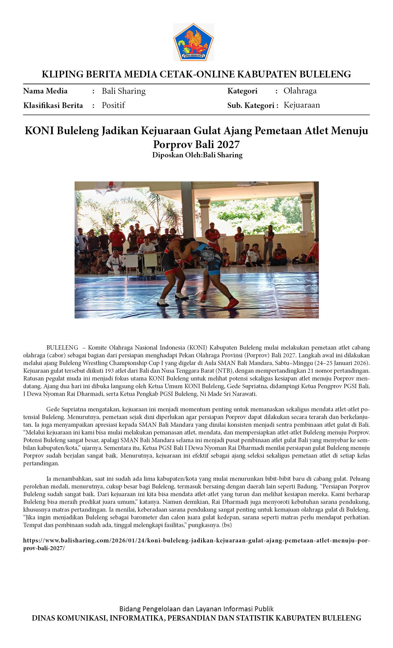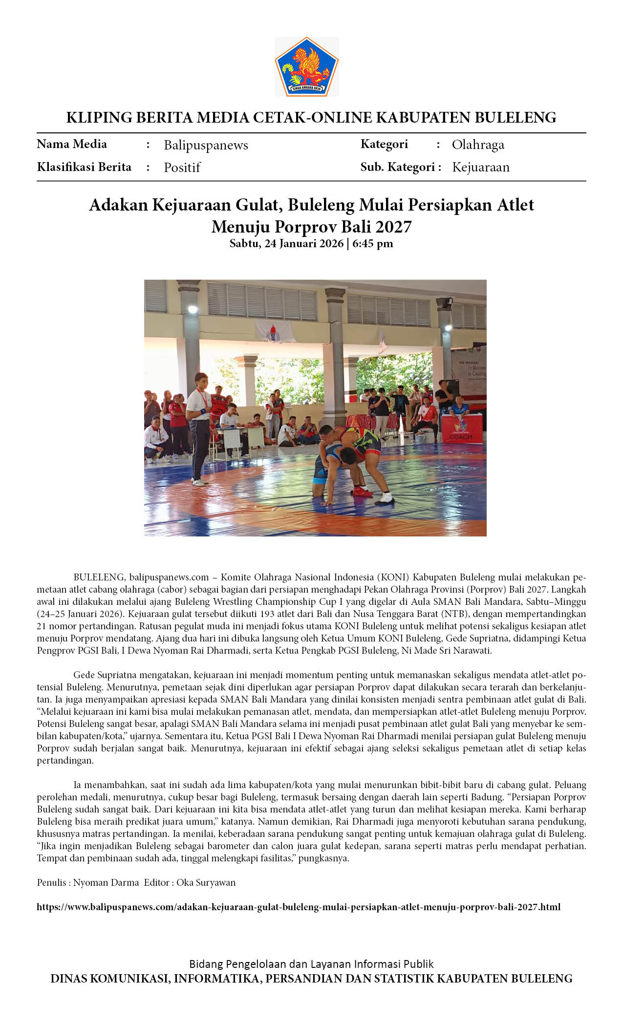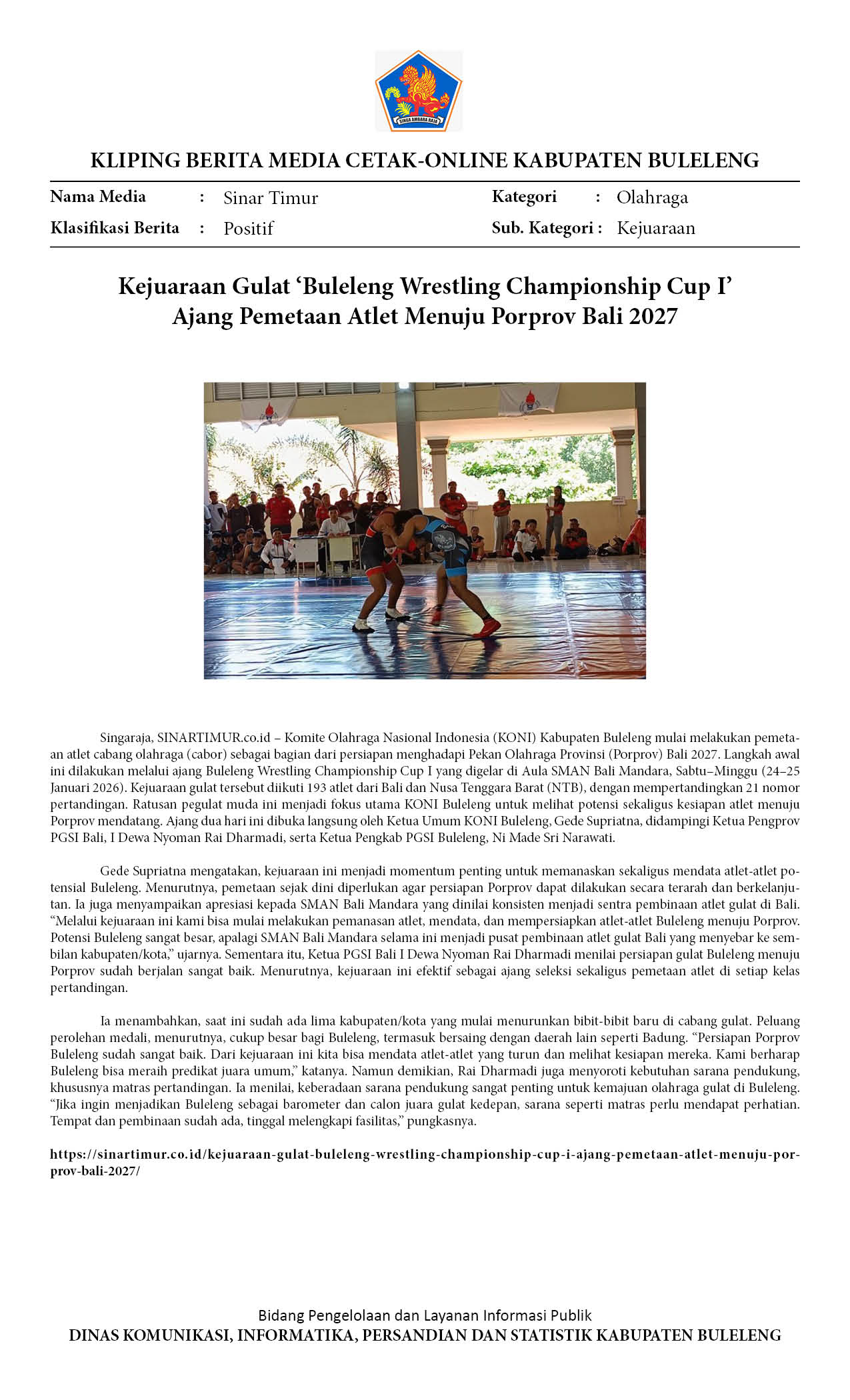 KEJUARAAN GULAT ‘BULELENG WRESTLING CHAMPIONSHIP CUP I’ AJANG PEMETAAN ATLET MENUJU PORPROV BALI 2027